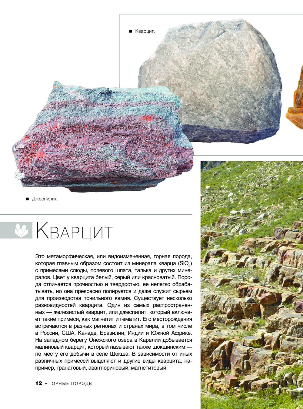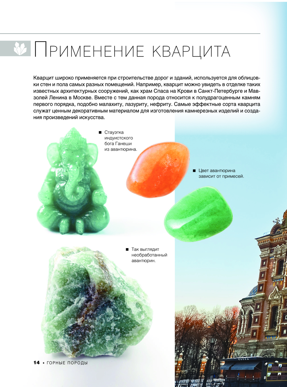 Чтобы познакомиться с царством камней и минералов, слагающих твердую оболочку Земли, вовсе не обязательно совершать далекие путешествия и посещать минералогические музеи. А для того, чтобы полюбоваться великолепными украшениями из алмазов, рубинов, сапфиров и жемчуга, даже не нужно держать их в руках. Достаточно открыть эту книгу, содержащую множество уникальных фотографий, и перед вами предстанут величественные здания из мрамора и песчаника, изящные и роскошные камнерезные изделия, сверкающие многочисленными гранями бриллианты и другие драгоценности, нерукотворные гранитные скалы и фантастические фигуры выветривания, древние и молодые горы, чьи недра хранят месторождения самых разных пород и минералов, россыпи самоцветов и залежи самородков.