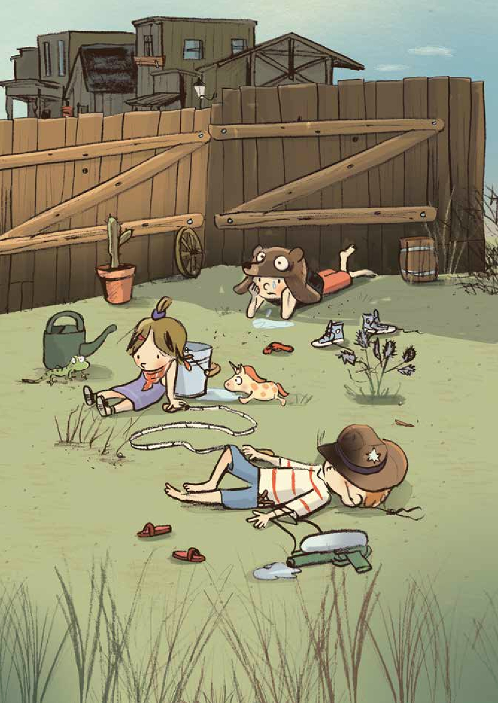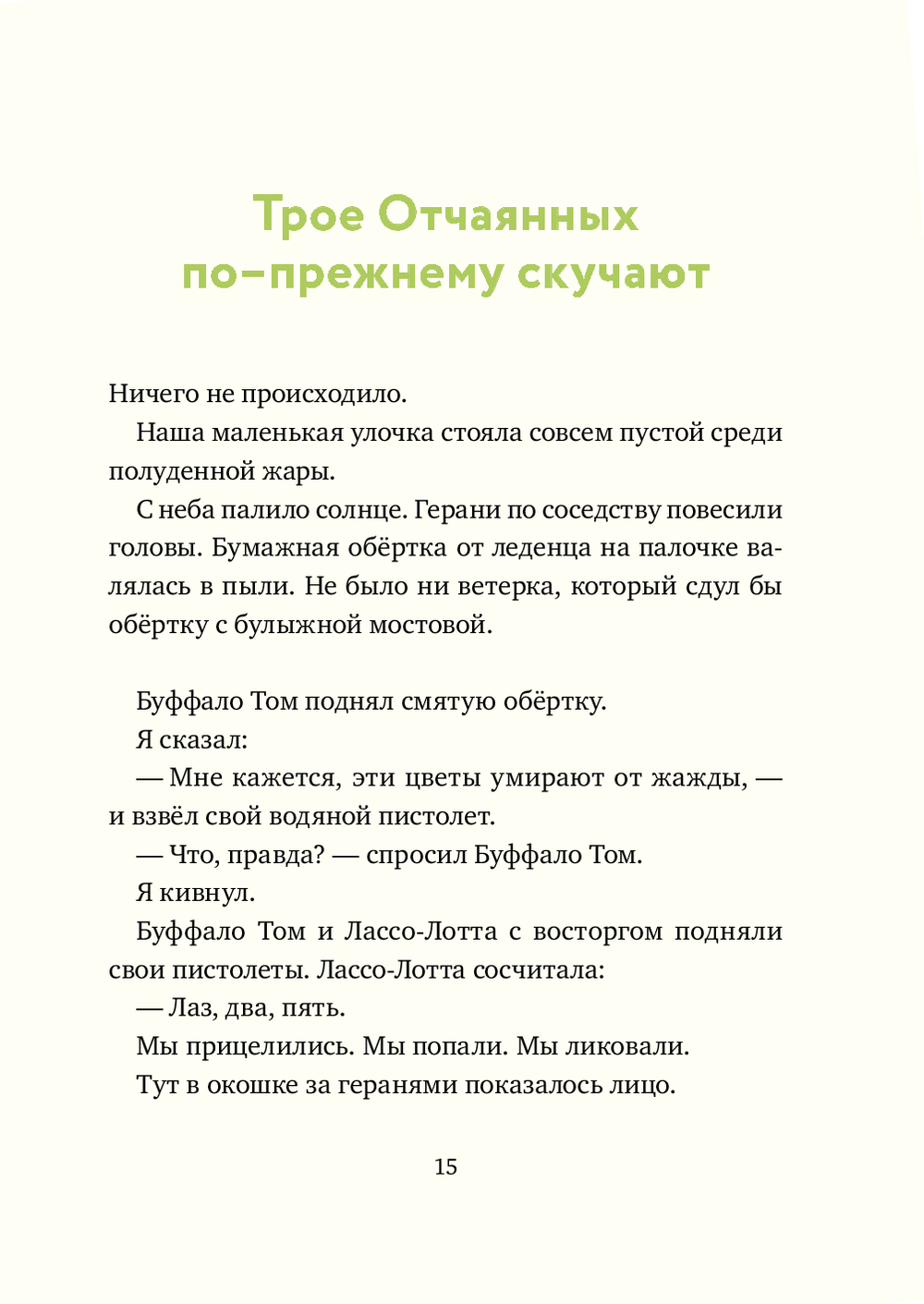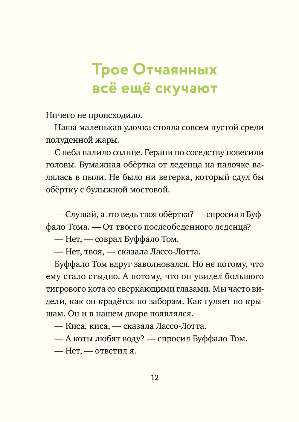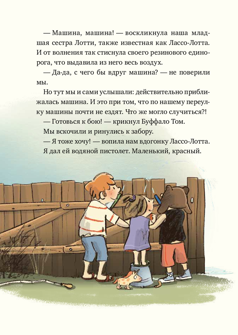 Для Тео, Тома и Лотти каждый день – приключение. Сила воображения позволяет им превращаться в отчаянных ковбоев, сыщиков, рыцарей или супергероев. Из кота получается опасный тигр, а из соседского сада – джунгли. Сад, впрочем, принадлежит одной пожилой даме – бесстрашной Фредерике, которая не боится ни пчёл, ни глупых и важных задавак. В конце переулка у Карлоса есть лавка-закусочная. Каждый день он продаёт детям по леденцу на палочке, и у него всегда хорошее настроение. Но однажды там появляется мужчина в чёрных ботинках, нацелившийся на дом Фредерики! Такого, конечно, Леденцовая банда никак не могла допустить!