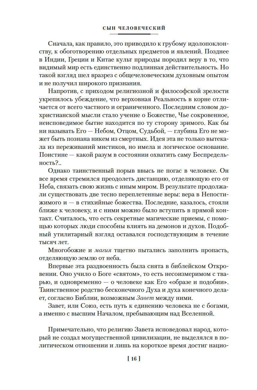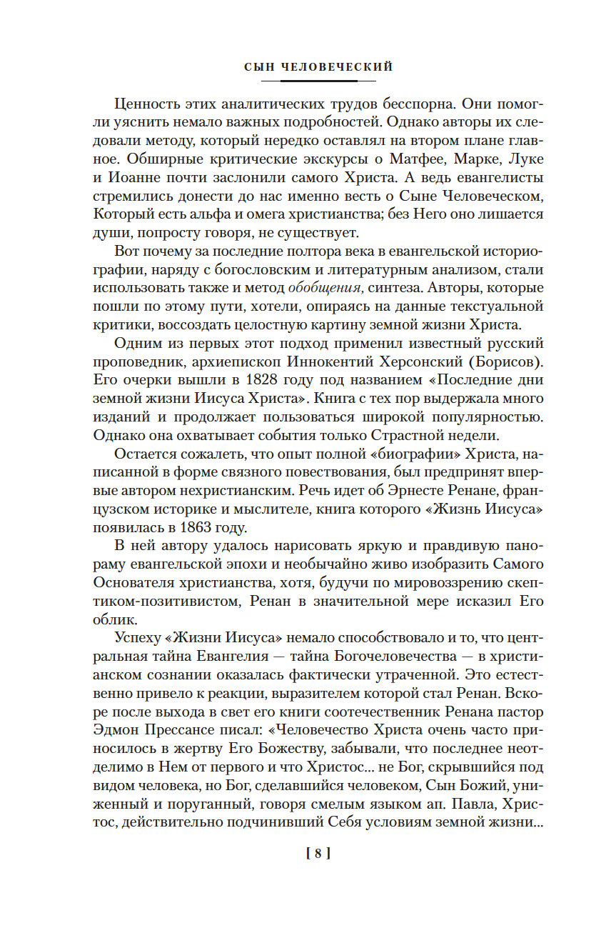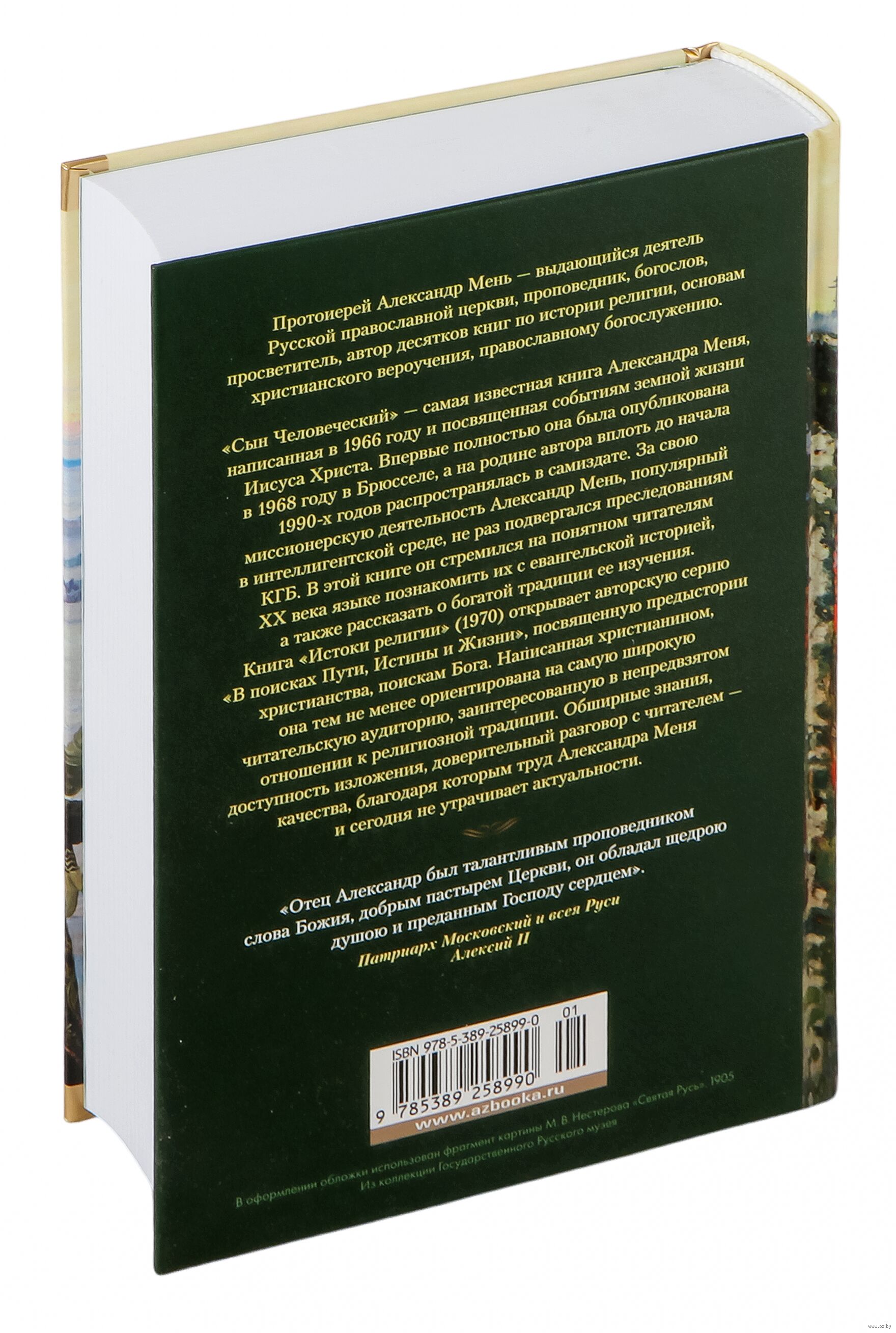 "Сын Человеческий" – самая известная книга Александра Меня, написанная в 1966 году и посвященная событиям земной жизни Иисуса Христа. Впервые полностью она была опубликована в 1968 году в Брюсселе, а на родине автора вплоть до начала 1990-х годов распространялась в самиздате. За свою миссионерскую деятельность Александр Мень, популярный в интеллигентской среде, не раз подвергался преследованиям КГБ. В этой книге он стремился на понятном читателям XX века языке познакомить их с евангельской историей, а также рассказать о богатой традиции ее изучения.