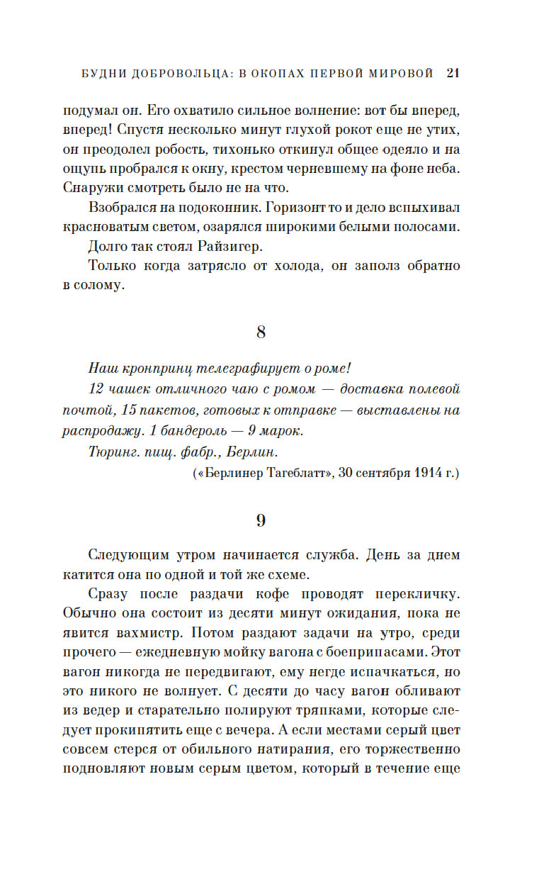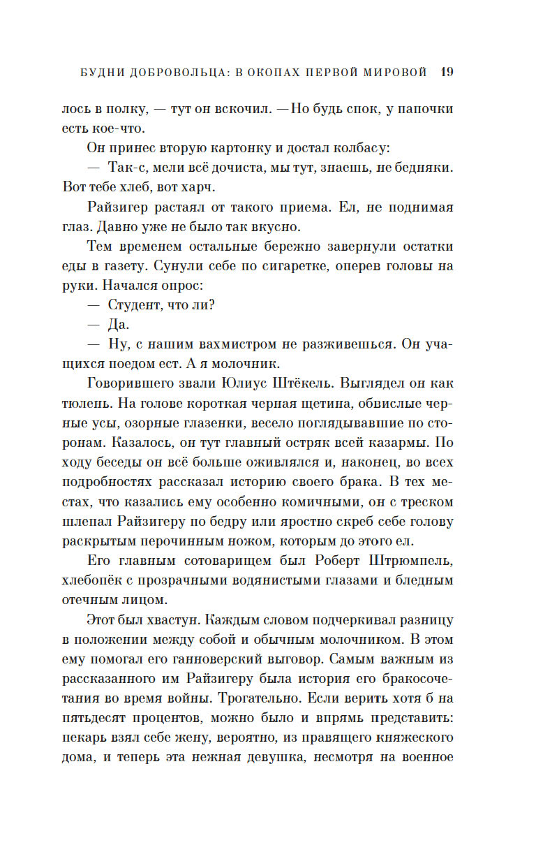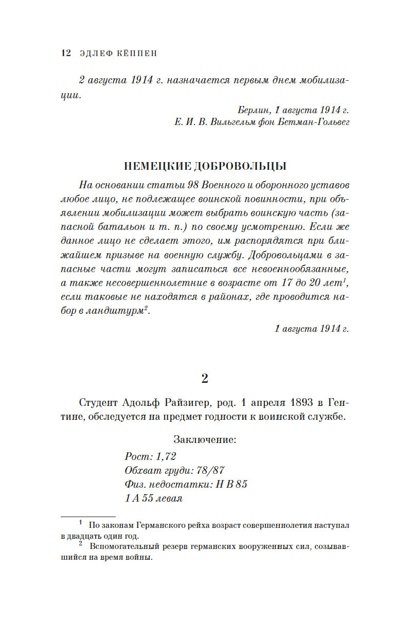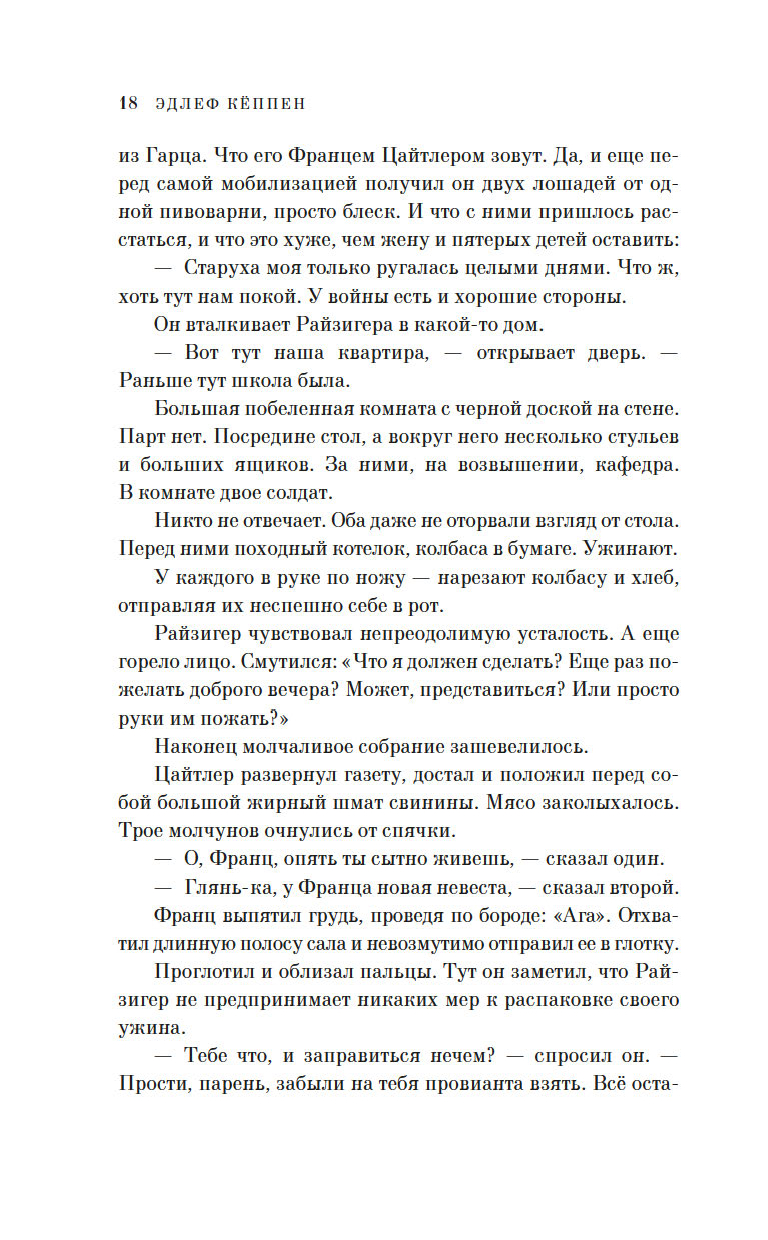 Участник Первой мировой войны, ушедший на фронт добровольцем с третьего курса философского факультета университета, Эдлеф Кёппен создал "монтажный роман", где оригинальные документы – цитаты из воззваний императора Вильгельма II, указы цензурных органов, газетные сообщения органично вплетены в сюжет, а прообразом главного героя Адольфа Райзигера является сам автор.