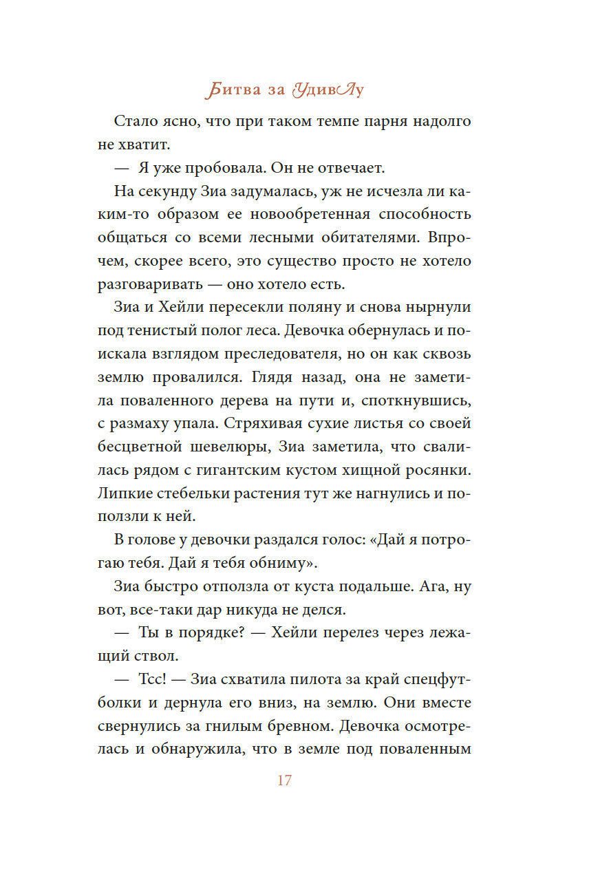 Лакус разрушен, боевые роботы Кадма орудуют в городе, разоряя дома альционов. Зиа Девять, преследуемая Лороком, скрывается в Блуждающем лесу. "Я не паду от твоей руки. Ты же падешь от моей", – сказал девочке арсианин. Что это? Очередная попытка запугать или страшное пророчество? Как бы то ни было, в лесу тоже становится опасно: то разъяренный зверь набросится, то хищные ножеджеки. Но и это не самое страшное: Зиа чувствует чужака, и он где-то рядом. Девочке и ее спутнику Хейли Тернеру нужно успеть разыскать Дзина. Вдруг тот сумеет остановить своего кровожадного брата, пока Зиа разбирается с Кадмом, ослепленным желанием господствовать над всем живым. Как спасти охваченную огнем Орбону, если даже разобраться, кому можно доверять, а кому нет, порой непосильная задача?..