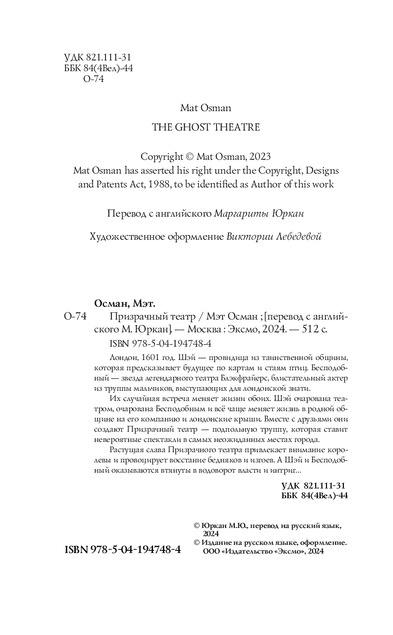 | Изготовитель | ООО «Издательство «Эксмо», Россия, 123308, город Москва, улица Зорге, дом 1, строение 1, этаж 20, каб 2013 |