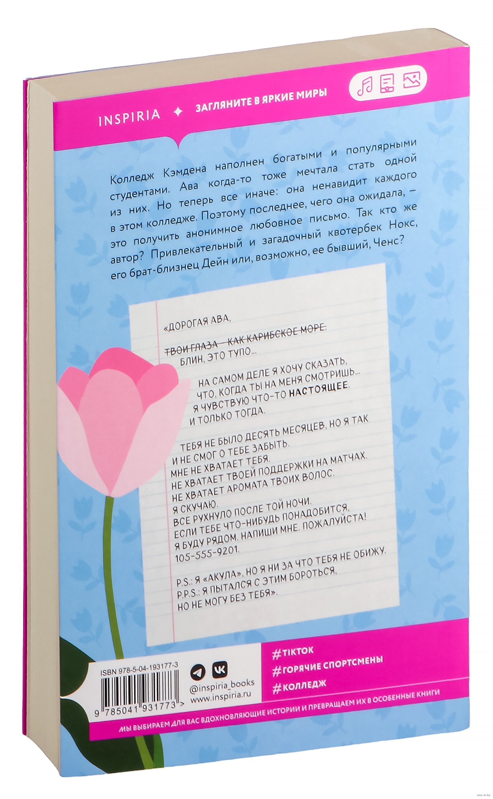 Колледж Кэмдена наполнен богатыми и популярными студентами. Ава когда-то тоже мечтала стать одной из них. Но теперь все иначе: она ненавидит каждого в этом колледже. Поэтому последнее чего она ожидала – это получить анонимное любовное письмо. Так кто же автор? Привлекательный и загадочный квотербек Нокс, его брат-близнец Дейн или, возможно, ее бывший, Ченс?