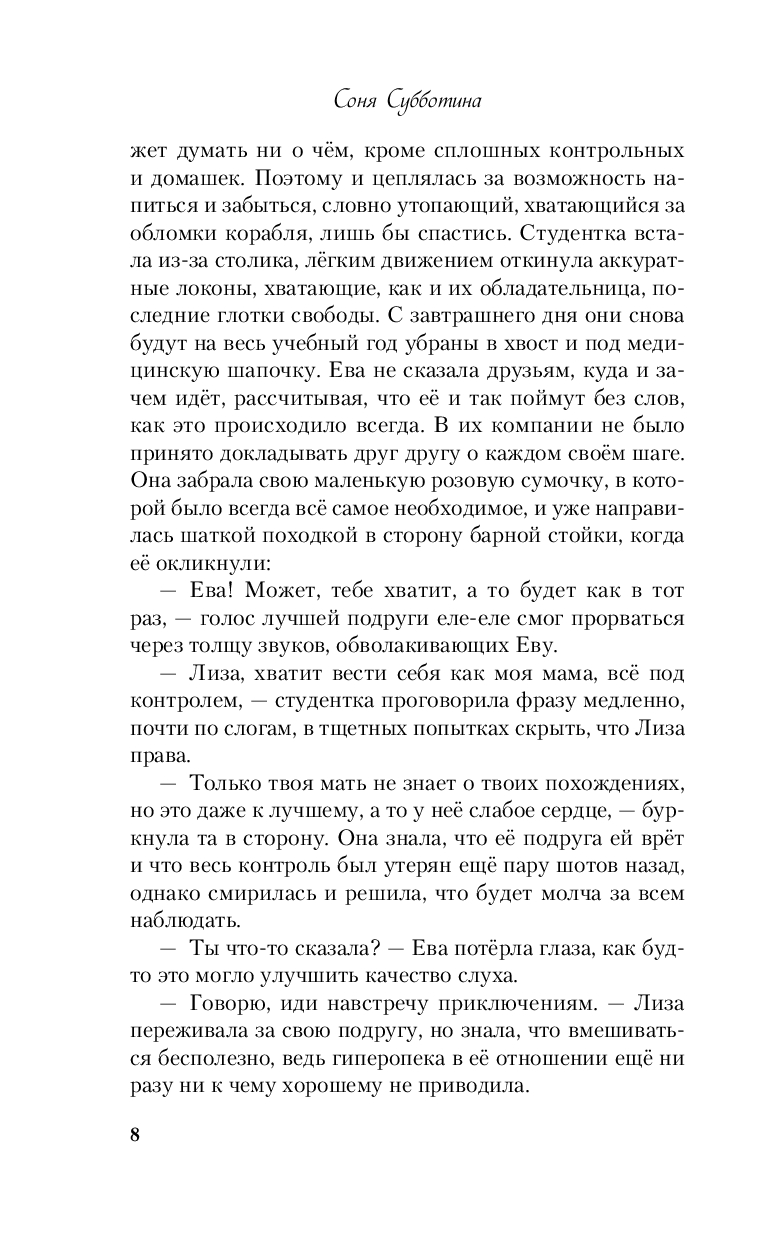 Ева обещала лучшей подруге, что "как в тот раз" точно не будет, но вот ее прижимает к стенке туалета клуба какой-то незнакомец, и не сказать, что она сильно-то и против. А сутками позже, когда она превращается из ярой тусовщицы в прилежную студентку медицинского, оказывается, что тот парень из клуба – ее новый преподаватель по биохимии. И судя по всему, он ее узнал, о чем говорят его недвусмысленные намеки. Домашки, контрольные, автоматы, отработки, олимпиады. Как все успеть? Еве теперь точно не до каких-то парней. И тем более не до отношений. Но что делать, если не покидает чувство, что кто-то преследует тебя?