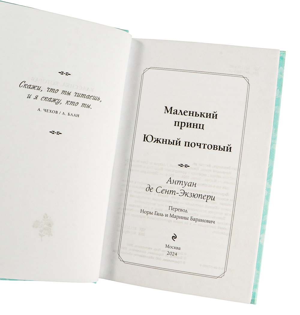 Повесть-сказка "Маленький принц" дана в уже ставшем классическим переводе Норы Галь, а первый роман А. де Сент-Экзюпери "Южный почтовый" – в не менее пронзительном переводе советского переводчика Марины Баранович.