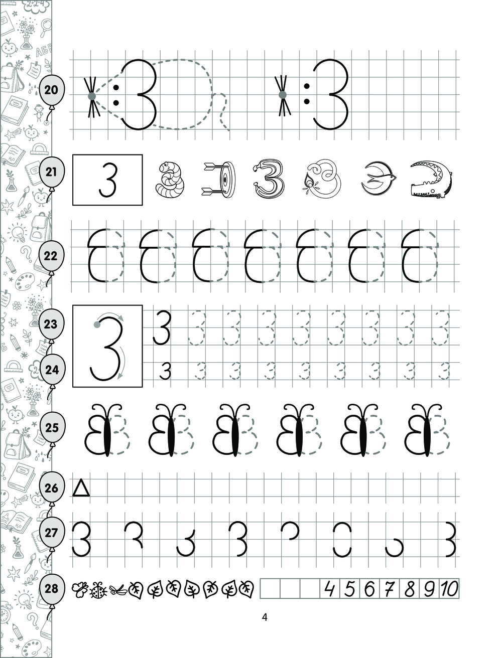 Дошкольник потренируется писать цифры, выполнять математические действия сравнения, сложения и вычитания, познакомится с понятиями "множество", "состав числа", "прямой и обратный счёт", "нумерация", "единицы и десятки". Книга поможет ребёнку научиться считать до 20, решать задачи, развить мелкую моторику, стать внимательным, усидчивым и аккуратным.