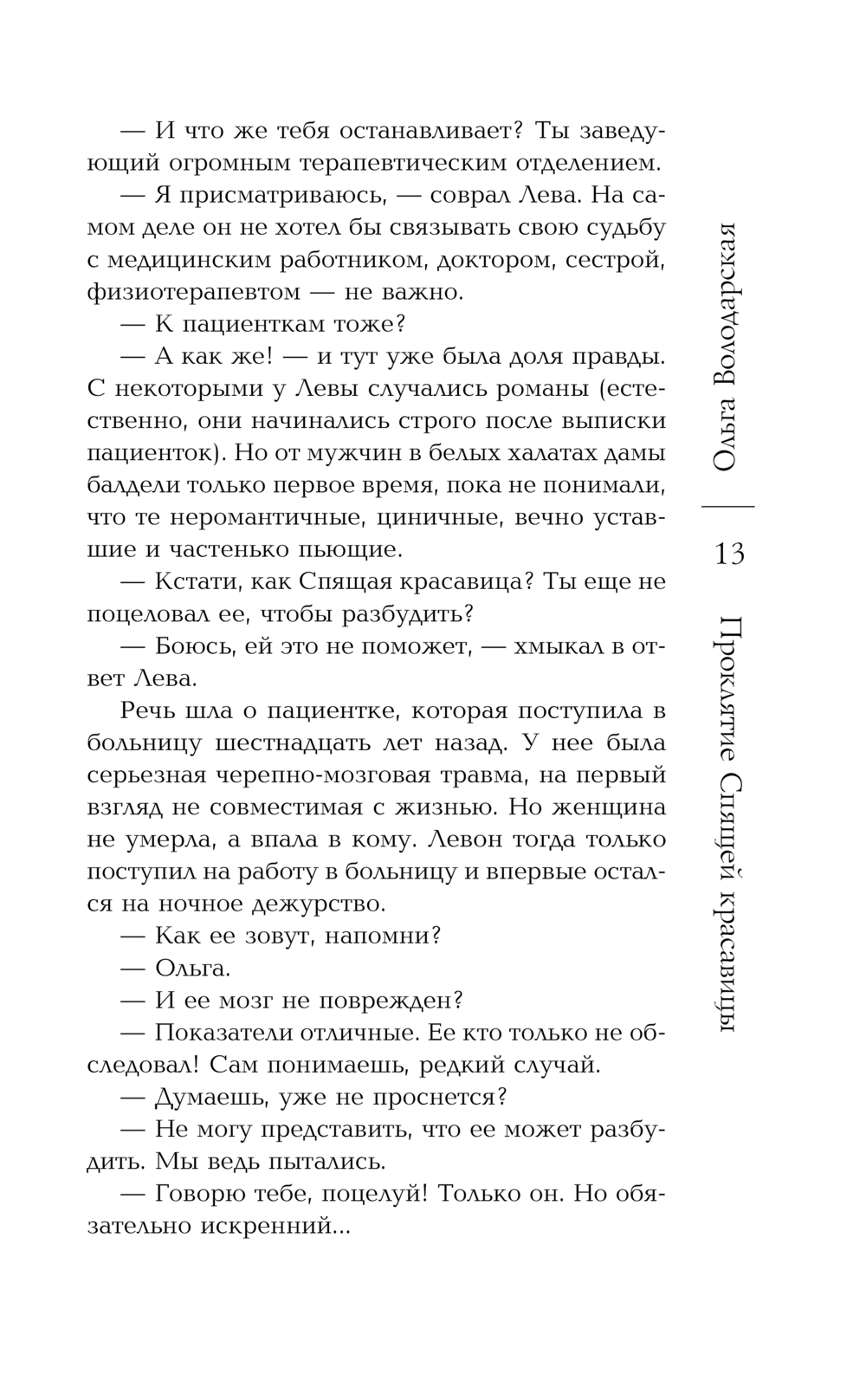 У нее амнезия. У доктора – чувства к загадочной пациентке. А у человека, много лет назад чуть не лишившего Олю жизни, паника. Он ждал ее пробуждения, желая получить то, что принадлежит ему по праву, но она ничего не помнит. Значит, все было зря? Или нужно пойти на еще одно преступление, чтобы Спящая красавица проснулась окончательно?