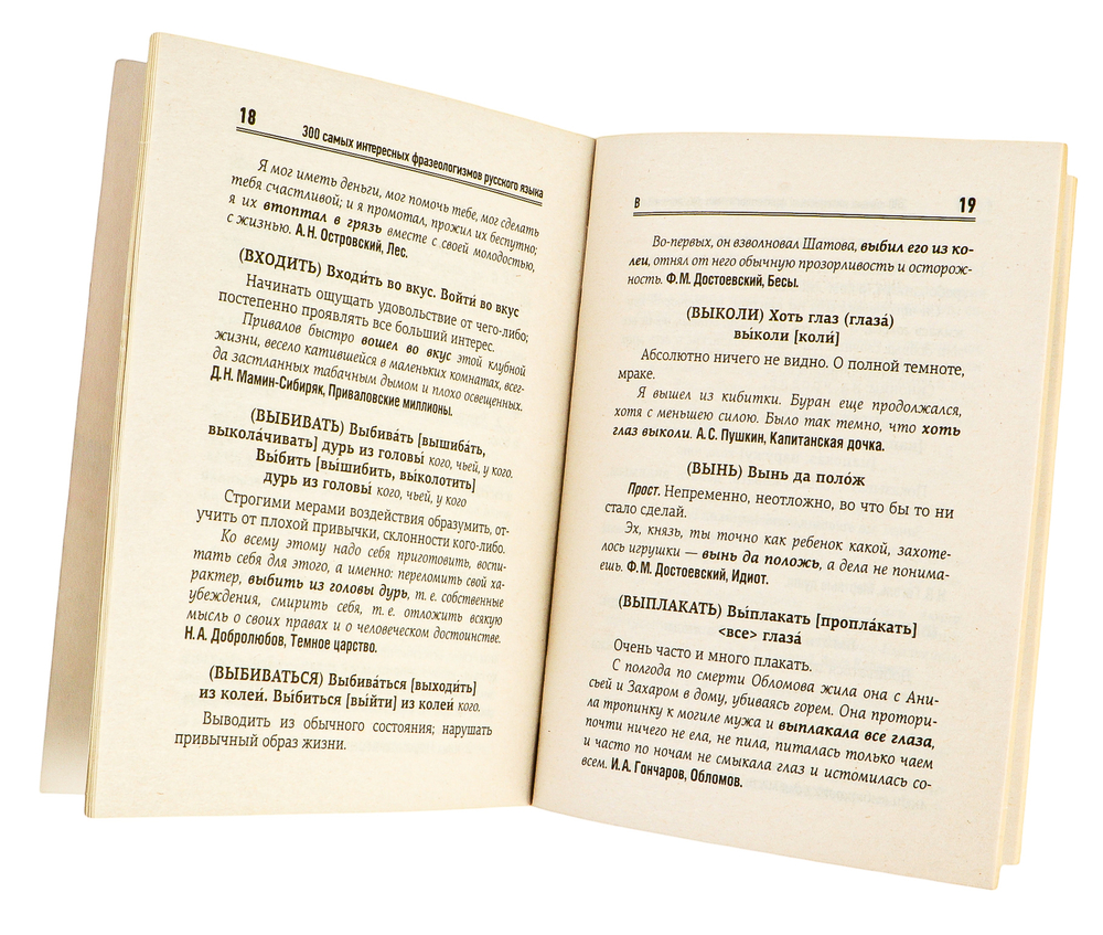В книге можно ознакомиться с разными фразеологизмами, узнать их значение, проверить правильное произношение, увидеть примеры употребления фразеологизма в русской литературе.