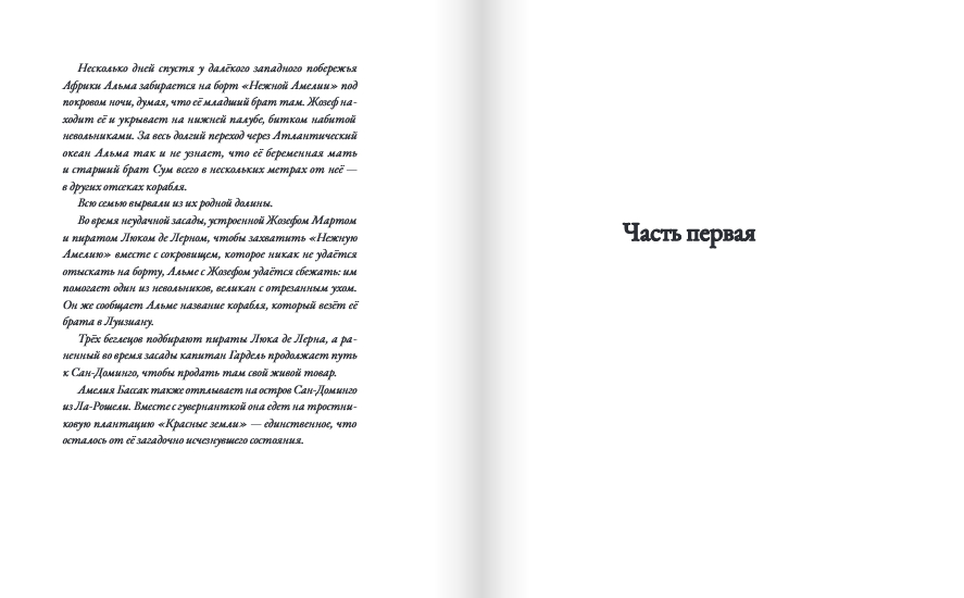 1787 год, приключения Альмы и Жозефа продолжаются. Корабль "Нежная Амелия" наконец добирается до Нового Cвета, как и его обедневшая хозяйка и тезка Амелия Бассак. Троих молодых людей теперь связывает пропавшее сокровище, но у Альмы только одна цель – найти на континенте младшего брата, пусть и среди тысяч рабов. Пираты и политики, бывшие невольники и дельцы – все встретятся на этой земле, где куется будущее. И уже слышно из-за океана, как отмирает старый мир. Французская революция все ближе.