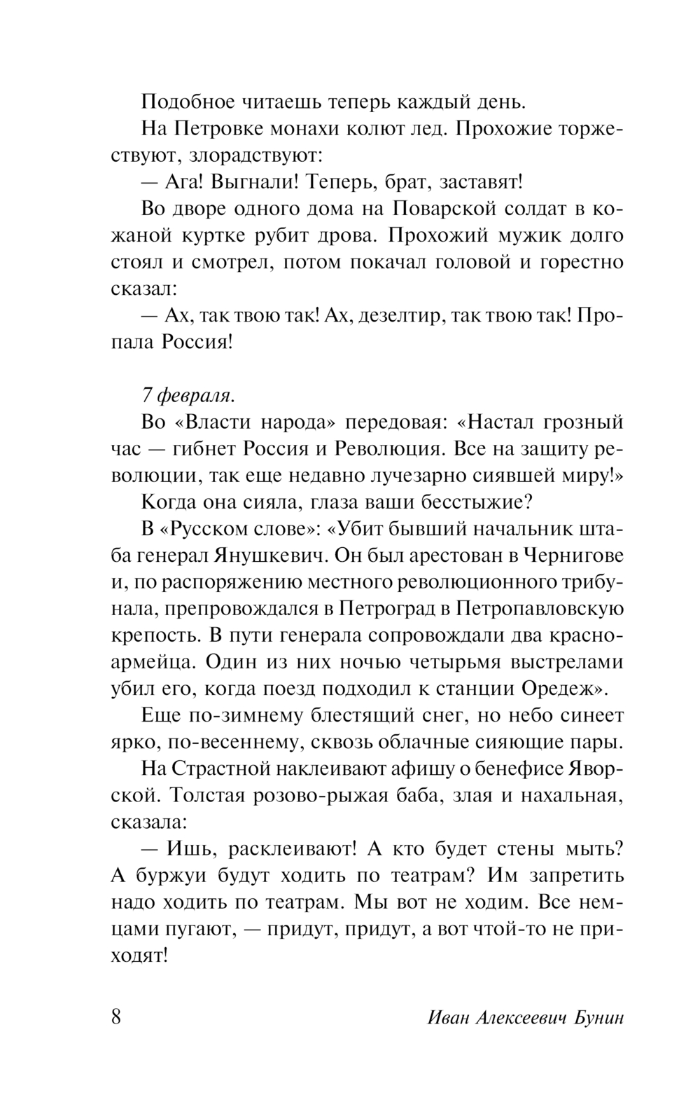 Книга, которую не публиковали – ни отдельно, ни в составе собраний сочинений – в СССР даже после реабилитации Бунина. Самая жестокая, горькая, безжалостная и самая личная книга писателя. Книга, в которой он, с беспощадной и язвительной иронией и неприкрытой ненавистью, выносит приговор большевизму и советской власти, которую имел несчастье наблюдать сначала в Москве, а потом в Одессе, вплоть до эмиграции.