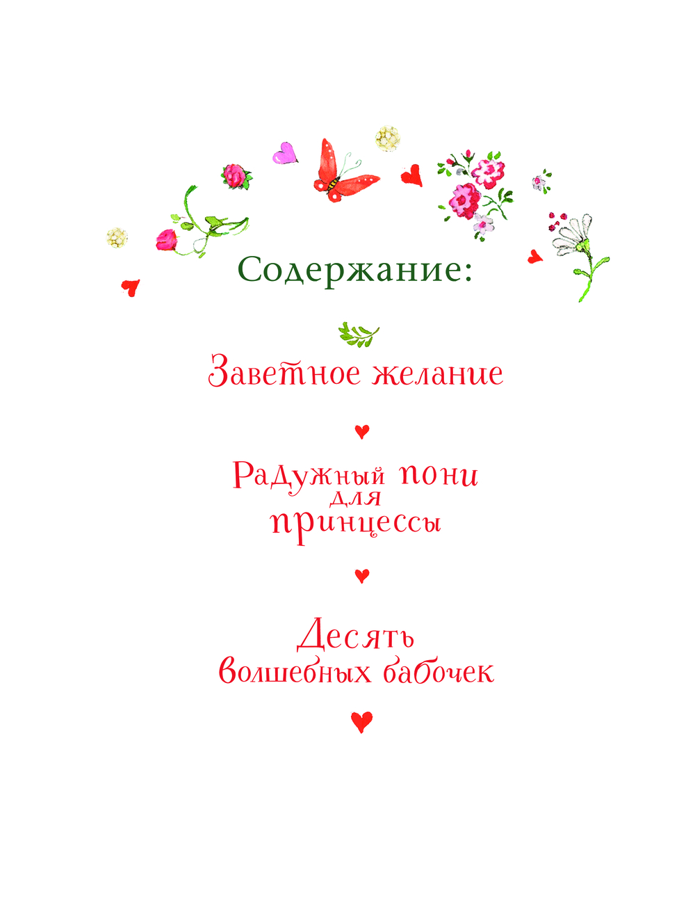 В сборник вошли истории "Фея Розочка. Заветное желание", "Фея Розочка. Радужный пони для принцессы", "Фея Розочка. Десять волшебных бабочек".