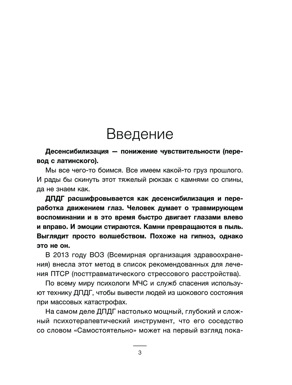 ДПДГ расшифровывается как десенсибилизация и переработка движением глаз. Человек думает о травмирующем воспоминании и в это время быстро двигает глазами влево и вправо. И эмоции "стираются". Это одна из двух официально признанных ВОЗ методик, её автор – Ф. Шапиро.