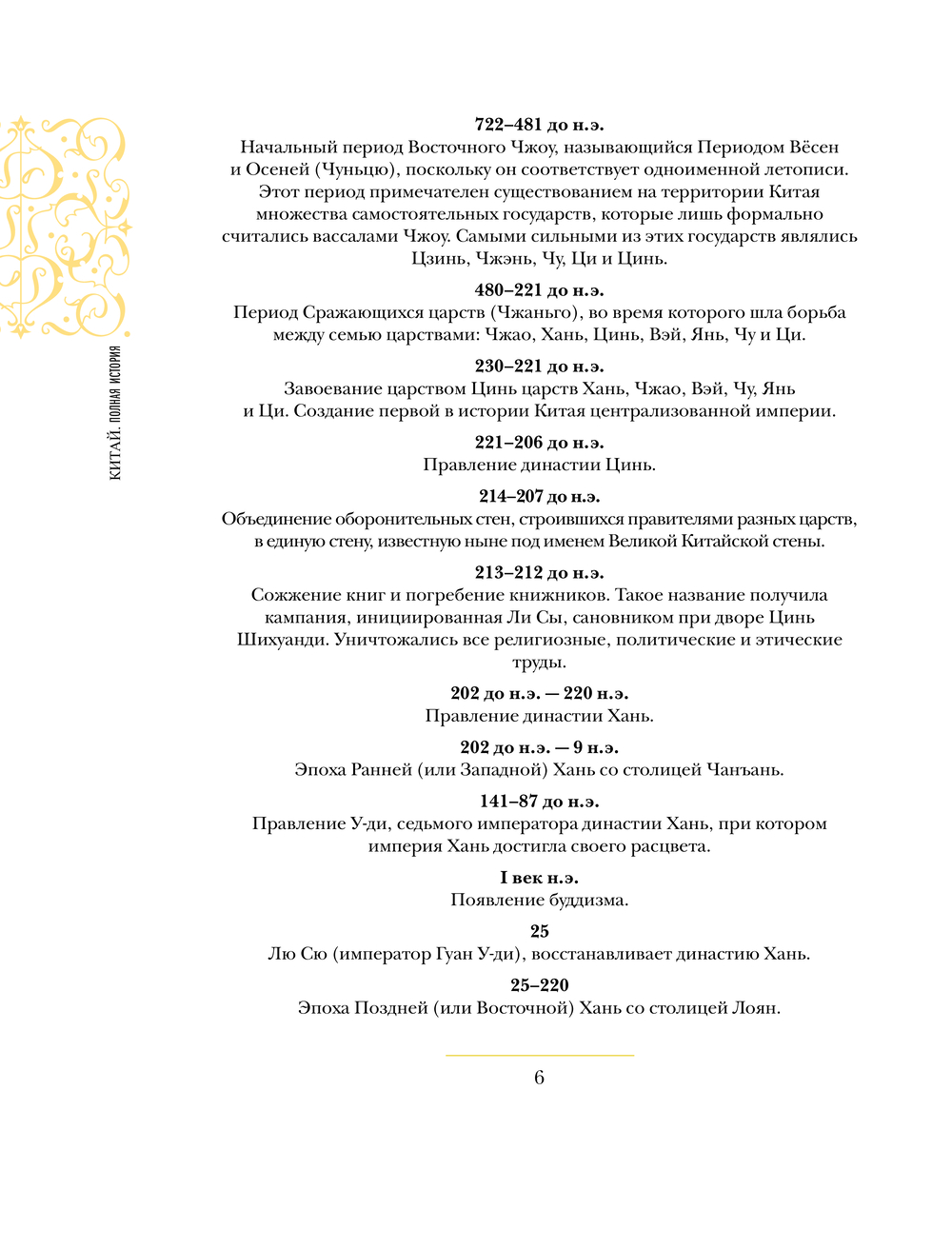 Книга известного китайского историка Лю Чжана – это краткий, но в то же время подробный путеводитель по истории Китая, который даст вам полное представление об истории этой великой страны, которая скромно называет себя Центральным (Серединным) Государством. Китай – удивительная и самобытная страна, которой удалось сохранить свою уникальность. История Китая с древнейших времен и до наших дней показывает, как ее географическое положение, экономическая, культурная и политическая ситуации влияли на развитие страны, рассказывает о знаменитых китайцах – правители, военачальники, ученые, – которые в разное время и очень по-разному утверждали ее место в мире.