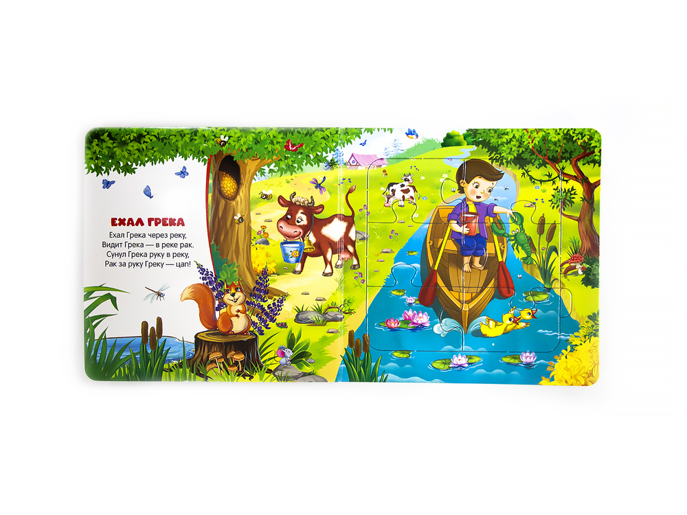 Книжка-пазл "Ехал Грека" – это первое знакомство с русским фольклором. Внутри книжки 5 ярких пазлов из 6 крупных деталей с интересными иллюстрациями. Пазлы помогут вашему ребенку развить фантазию, мелкую моторику рук ребенка, его усидчивость и внимание. Играйте и читайте книгу вместе – проводите время с пользой!
