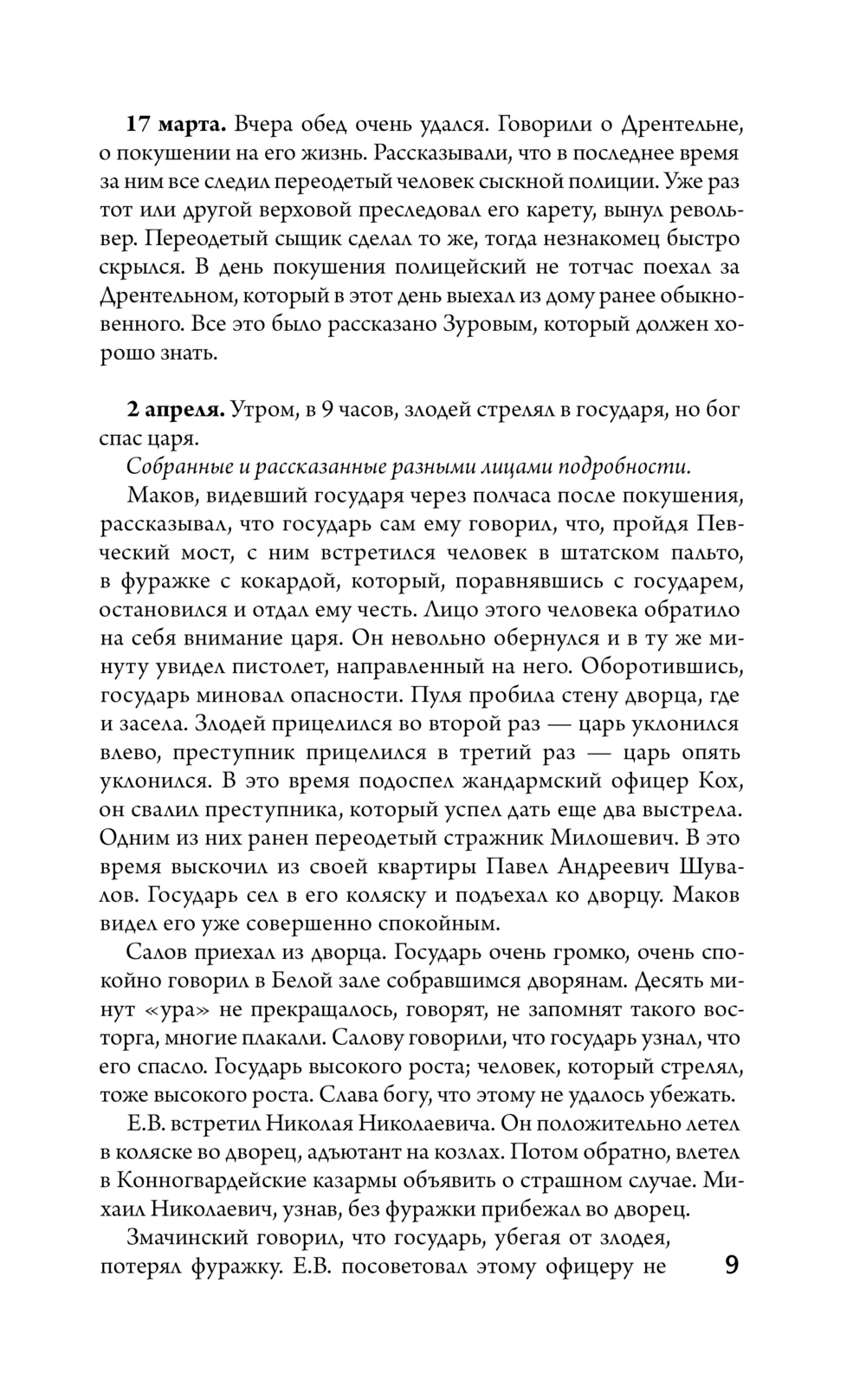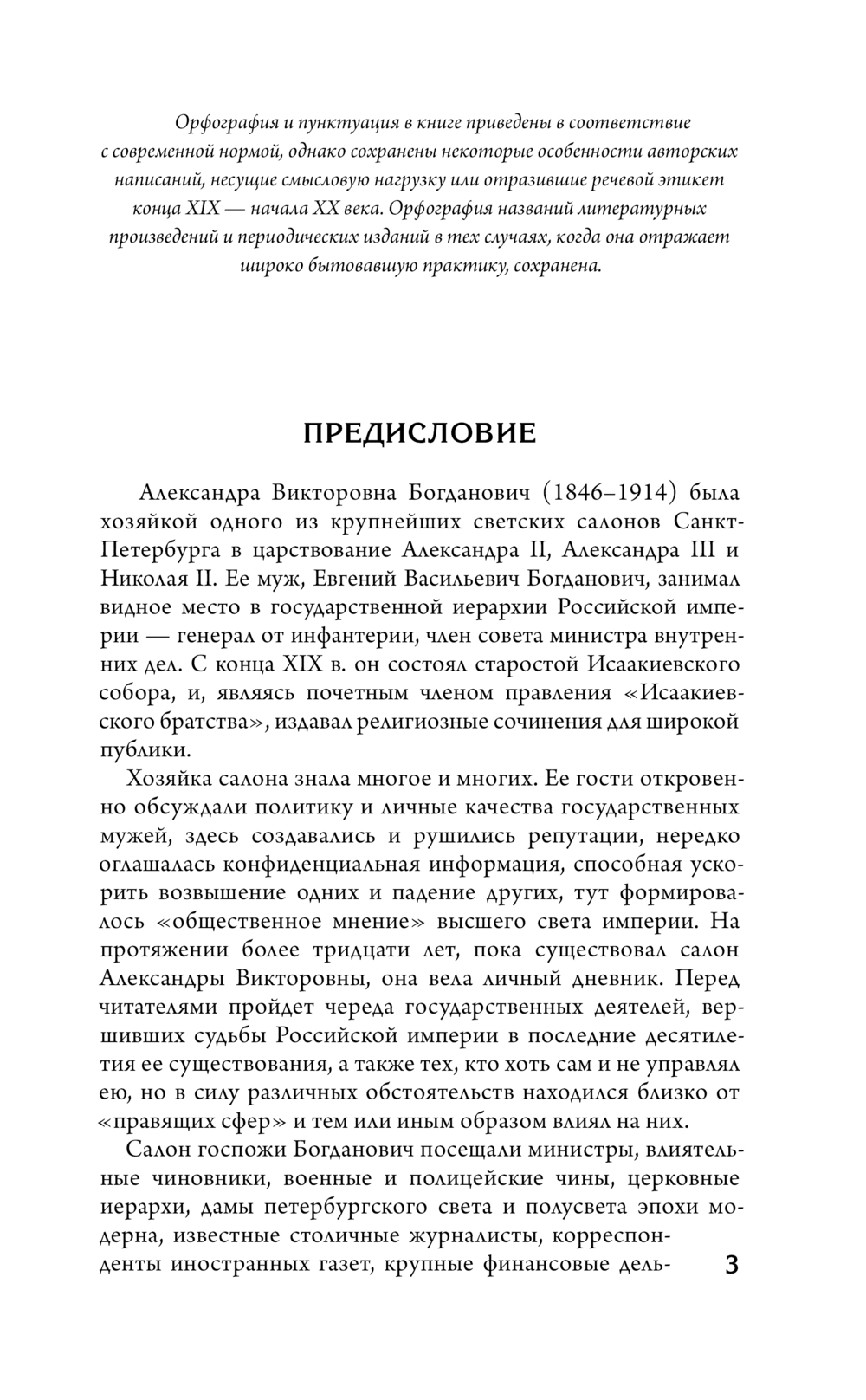 На страницах очень личного дневника Александры Викторовны Богданович (1846-1914) – хозяйки одного из крупнейших светских салонов Санкт-Петербурга в царствование Александра II, Александра III и Николая II – нашли отражение многие важнейшие события отечественной истории конца XIX – начала XX в.: движение народовольцев, убийство Александра II, смерть Александра III и воцарение Николая II, "Ходынка", русско-японская война, "Кровавое воскресенье", революция 1905-1907 гг., убийство П.А. Столыпина и многое другое.