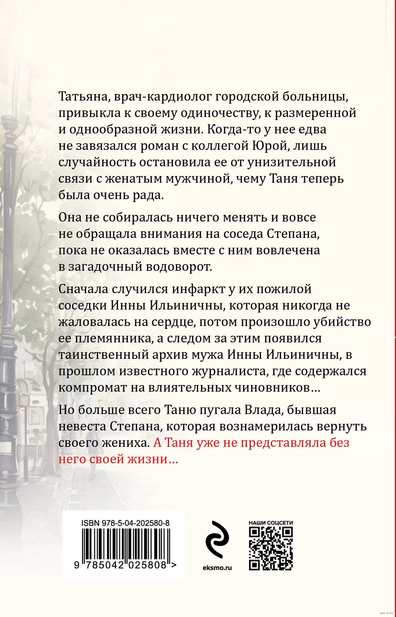 Сначала случился инфаркт у их пожилой соседки Инны Ильиничны, которая никогда не жаловалась на сердце, потом произошло убийство ее племянника, а следом за этим появился таинственный архив мужа Инны Ильиничны, в прошлом известного журналиста, где содержался компромат на влиятельных чиновников... Но больше всего Таню пугала Влада, бывшая невеста Степана, которая вознамерилась вернуть своего жениха. А Таня уже не представляла без него своей жизни...
