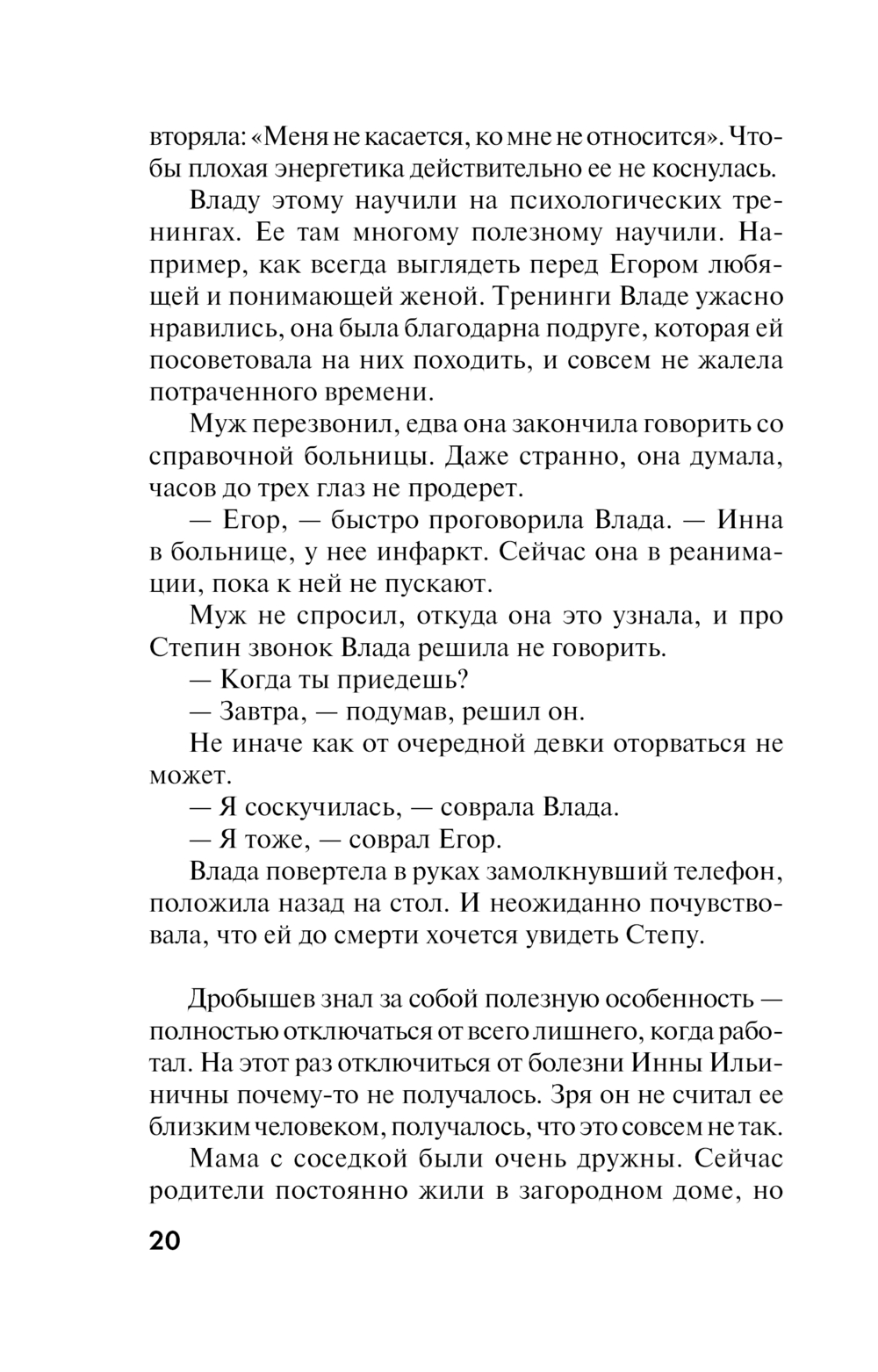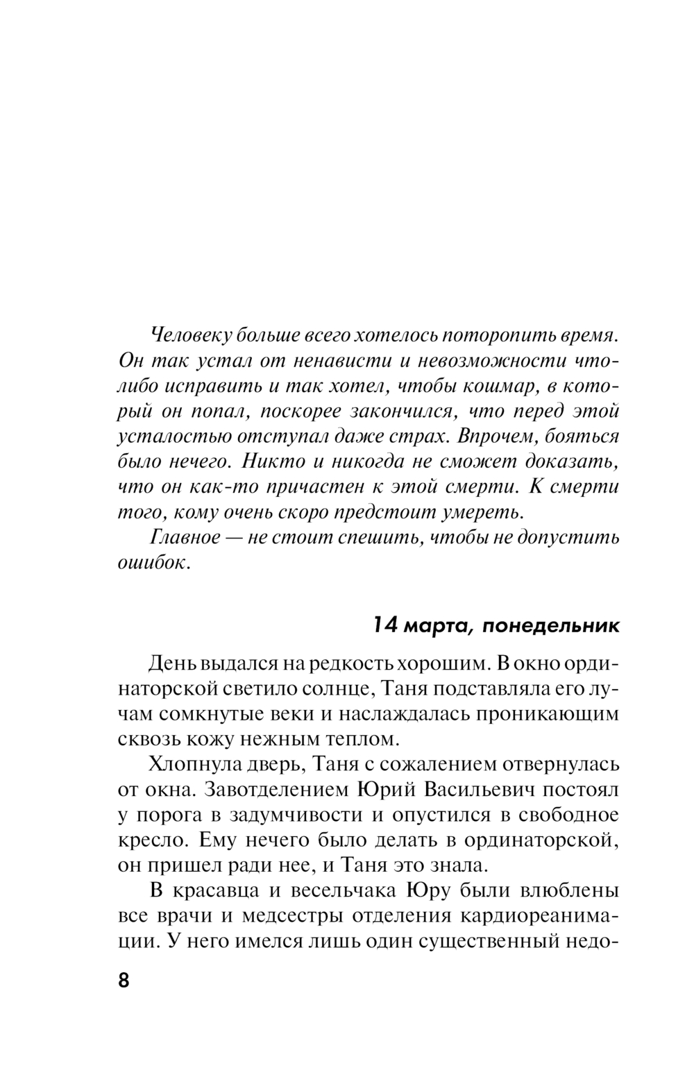 Татьяна, врач-кардиолог городской больницы, привыкла к своему одиночеству, к размеренной и однообразной жизни. Когда-то у нее едва не завязался роман с коллегой Юрой, лишь случайность остановила ее от унизительной связи с женатым мужчиной, чему Таня теперь была очень рада. Она не собиралась ничего менять и вовсе не обращала внимания на соседа Степана, пока не оказалась вместе с ним вовлечена в загадочный водоворот.