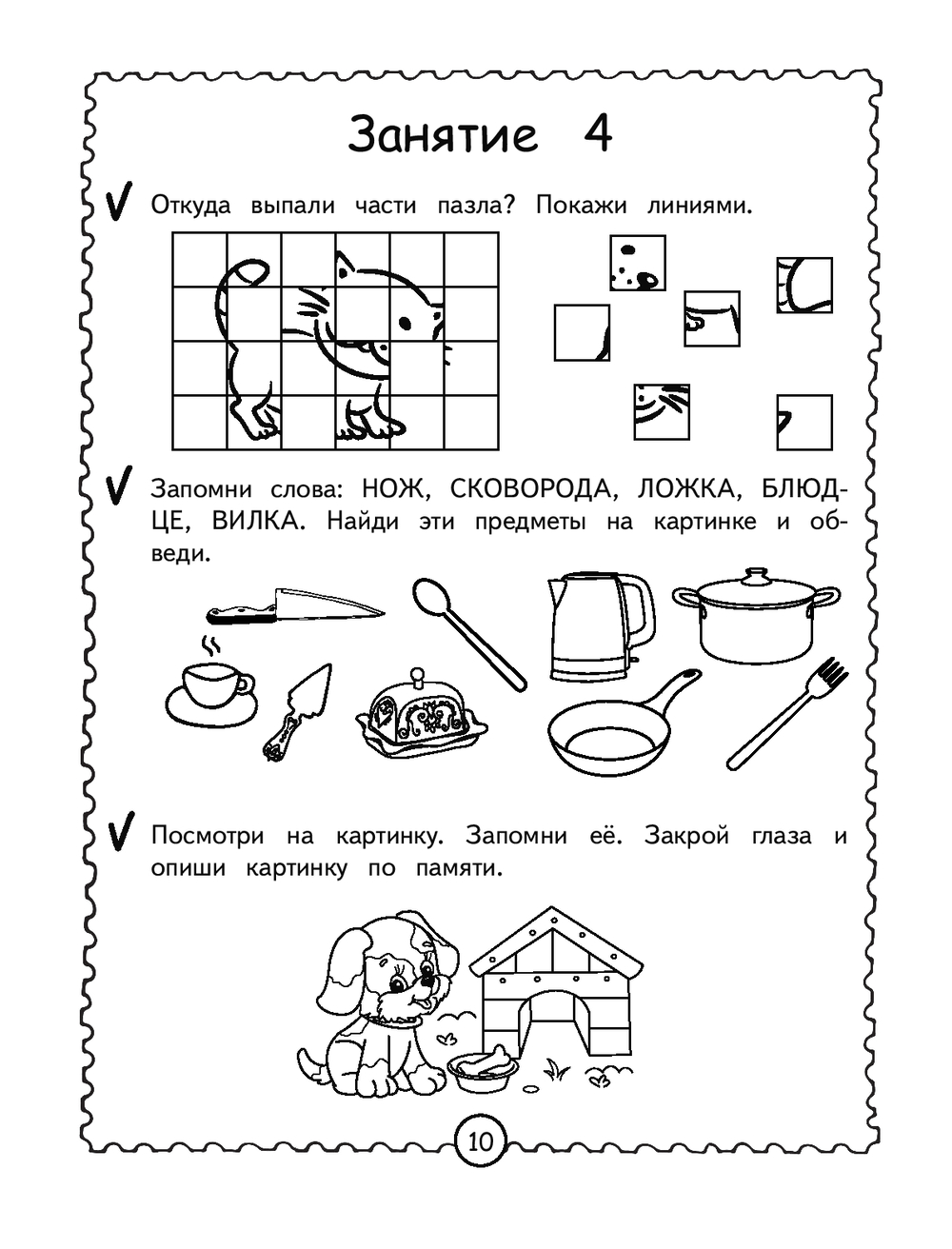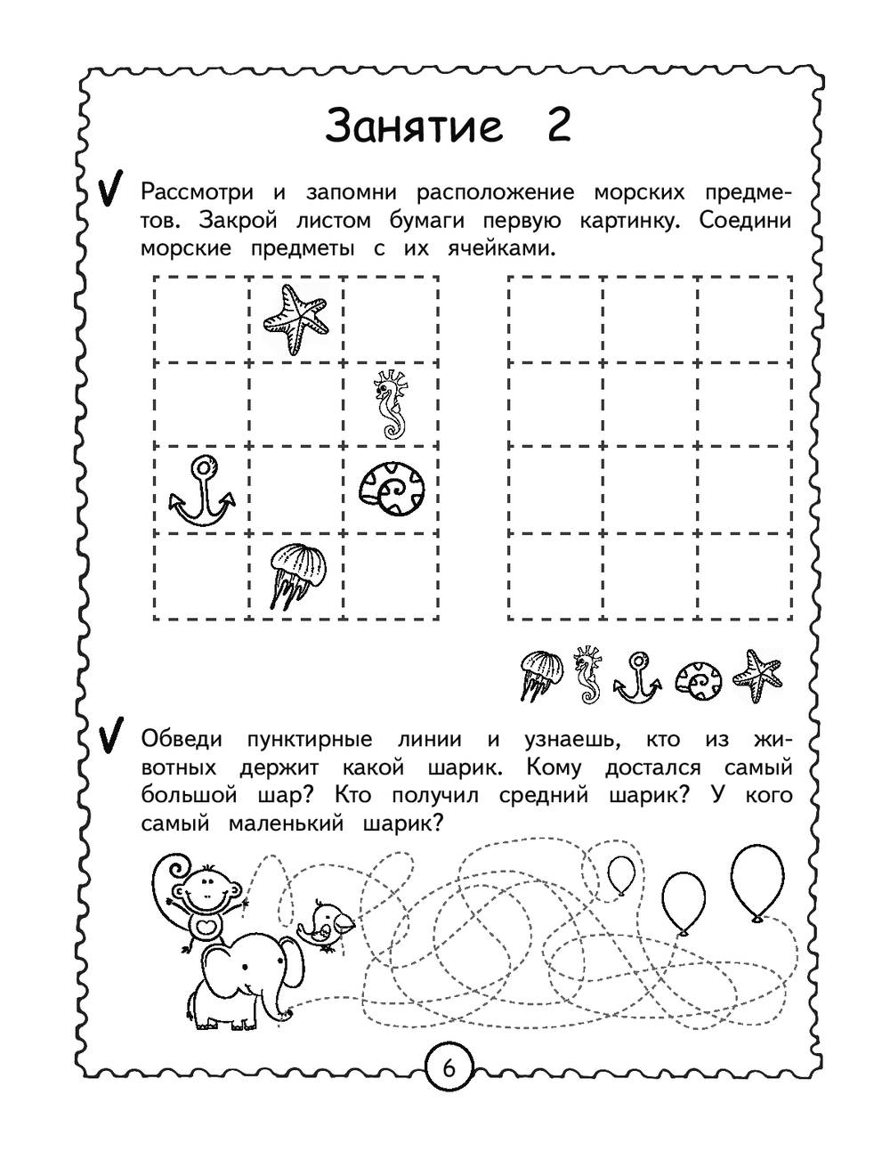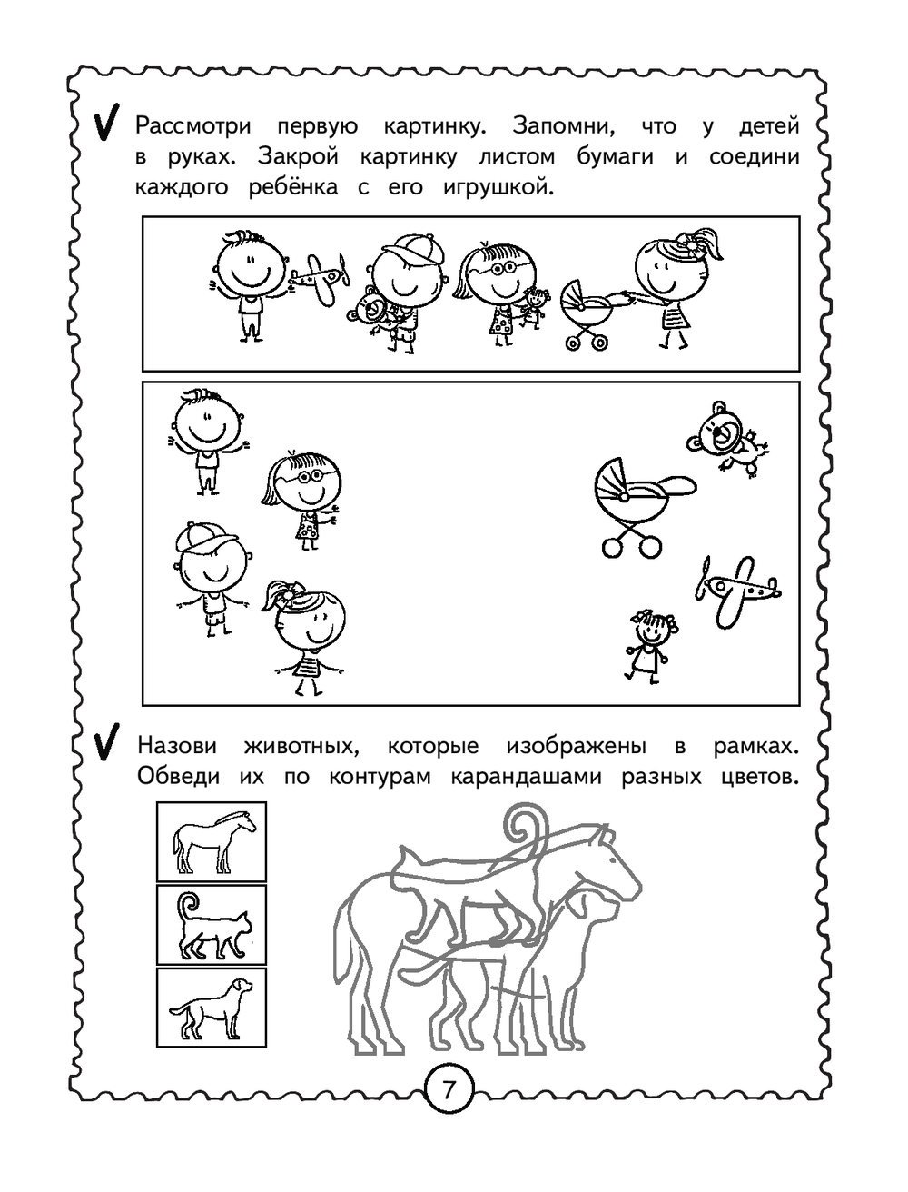 Каждый разворот книги – отдельное занятие, рассчитанное на 15 минут и состоящее из занимательных заданий. Выполняя увлекательные задания, дошкольник будет вспоминать четверостишия, используя картинки и схемы, перерисовывать по клеткам, дорисовывать половинки, искать отличия, проходить лабиринты, объединять предметы в пары, искать лишнее и др. Представленные в книге развивающие задания помогут ребёнку в игровой форме усовершенствовать такие свойства внимания, как: устойчивость, сосредоточенность, переключаемость, распределение и объём, а также потренировать кратковременную и долговременную память.