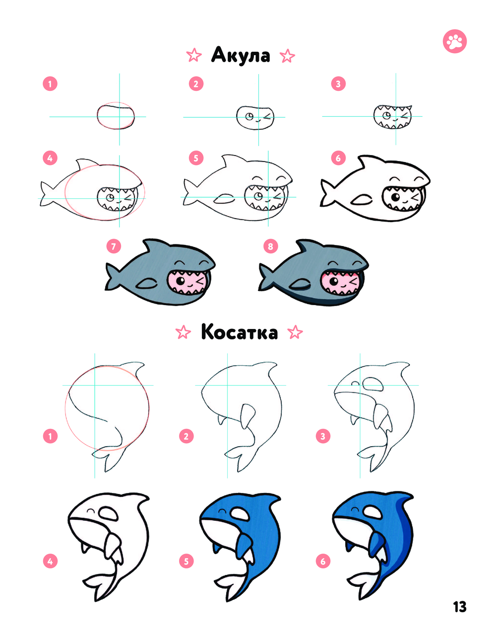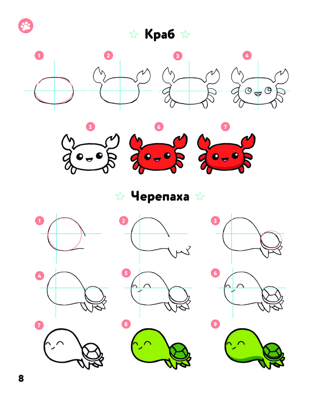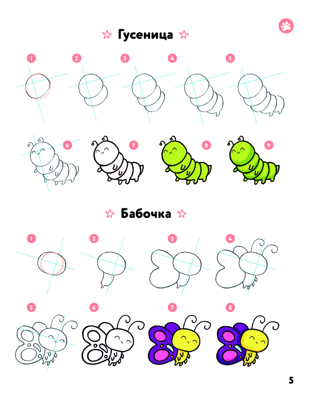 Самые милые (и не только!) персонажи, очаровательные зверушки, транспорт, вкусная еда и здания от вигвама до Биг Бена... С помощью пошаговых схем рисовать эти объекты просто и весело, нужно лишь немного практики.