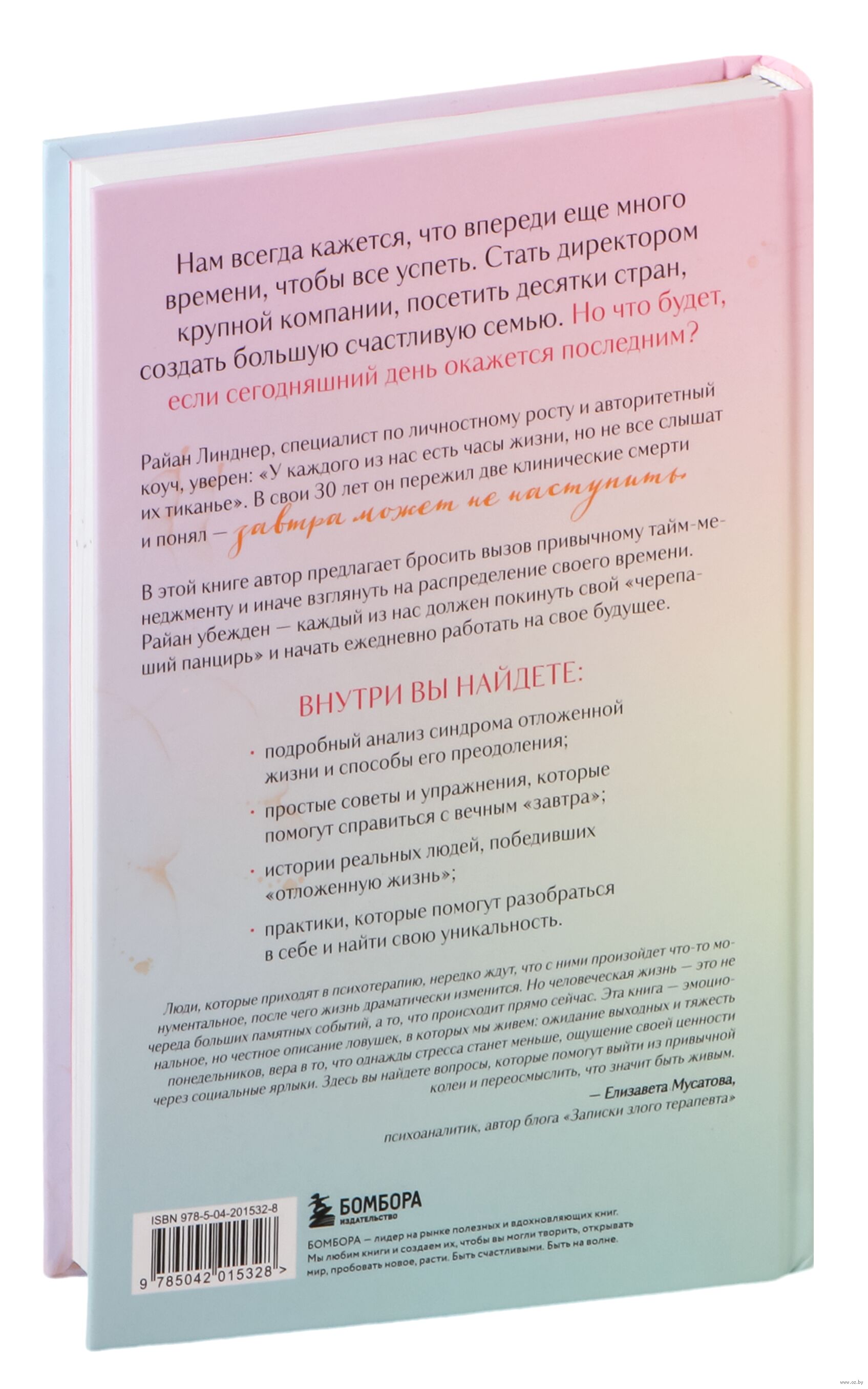 Райан Линднер, специалист по личностному росту и авторитетный коуч, уверен: "У каждого из нас есть часы жизни, но не все слышат их тиканье". В свои 30 лет он пережил две клинические смерти и понял – завтра может не наступить.