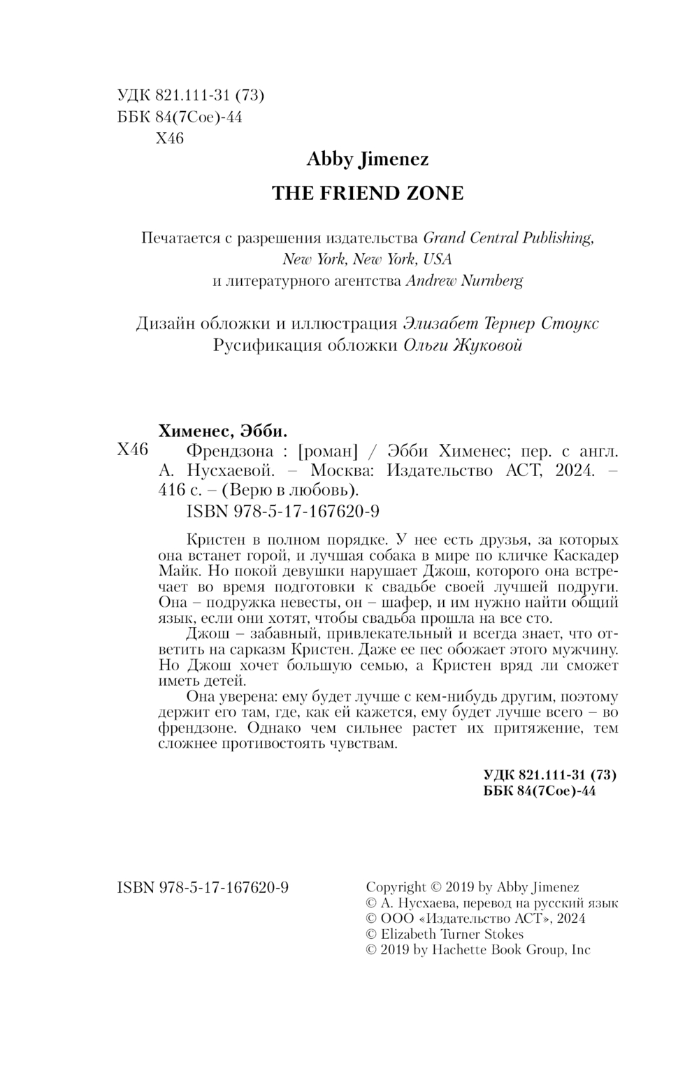 Она – подружка невесты, он – шафер, и им нужно найти общий язык, если они хотят, чтобы свадьба прошла на все сто. Джош – забавный, привлекательный и всегда знает, что ответить на сарказм Кристен. Даже ее пес обожает этого мужчину. Но Джош хочет большую семью, а Кристен вряд ли сможет иметь детей. Она уверена: ему будет лучше с кем-нибудь другим, поэтому держит его там, где, как ей кажется, ему будет лучше всего, – во френдзоне.