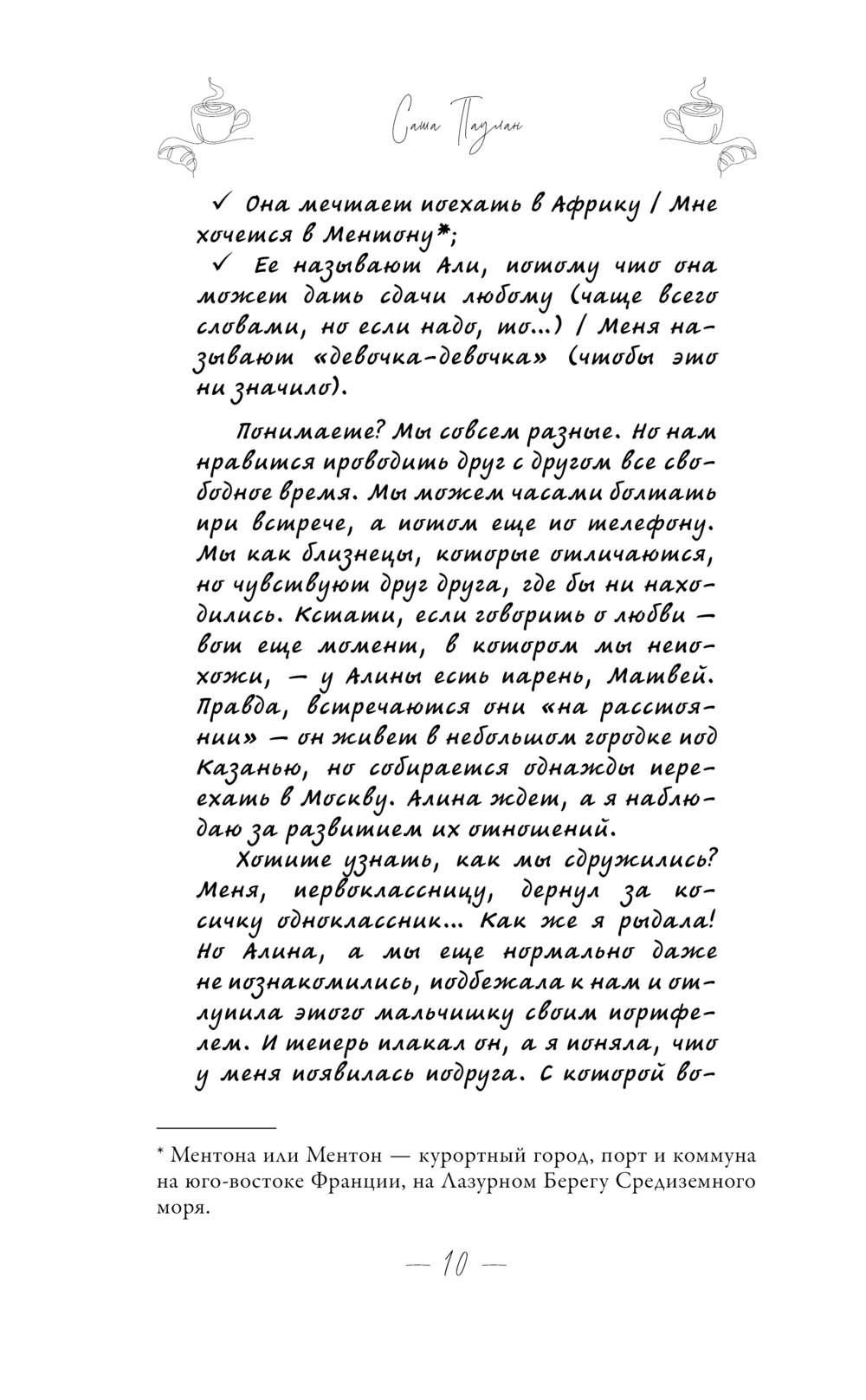 Наконец-то наступили долгожданные летние каникулы, и Таяна рассчитывала отдохнуть после первой летней сессии. Но учеба просто так не отпускает... В университете решают провести "Месяц Франции" – чтобы погрузить будущих студентов во французскую культуру, по обмену приезжают учащиеся из Парижа. Казалось бы, что может пойти не так? Таяне нужно расположить у себя дома Патрис Котийяр и помочь ей в проведении вечера французского кино. Девушка уже представляет себя с новой подругой, их девчачьи разговоры и то, как они здорово проведут целый месяц. Но одна небольшая ошибка при заполнении документов меняет всё...