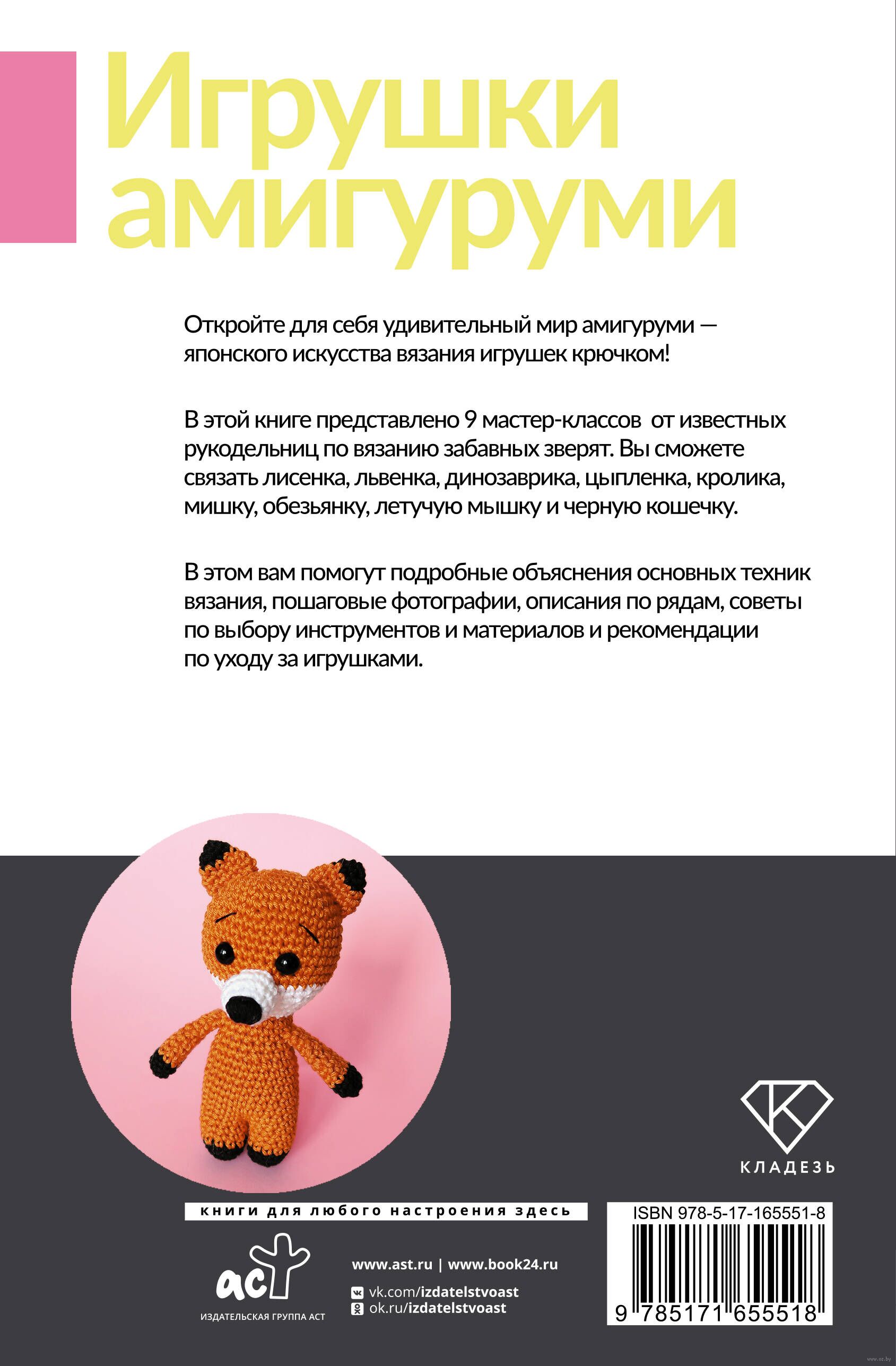 В этом вам помогут подробные объяснения основных техник вязания, пошаговые фотографии, описания по рядам, советы по выбору инструментов и материалов и рекомендации по уходу за игрушками.
