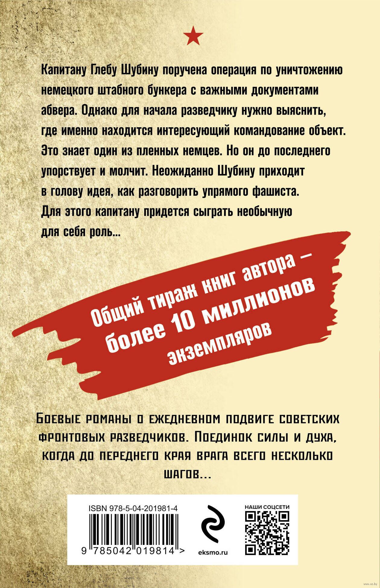 Капитану Глебу Шубину поручена операция по уничтожению немецкого штабного бункера с важными документами абвера. Однако, для начала разведчику нужно выяснить, где именно находится интересующий командование объект. Это знает один из пленных немцев. Но он до последнего упорствует и молчит. Неожиданно Шубину приходит в голову идея, как разговорить упрямого фашиста. Для этого капитану придется сыграть необычную для себя роль...