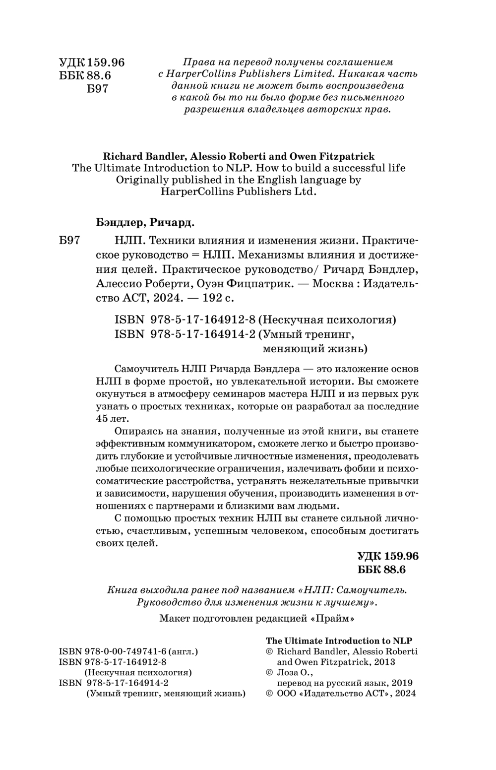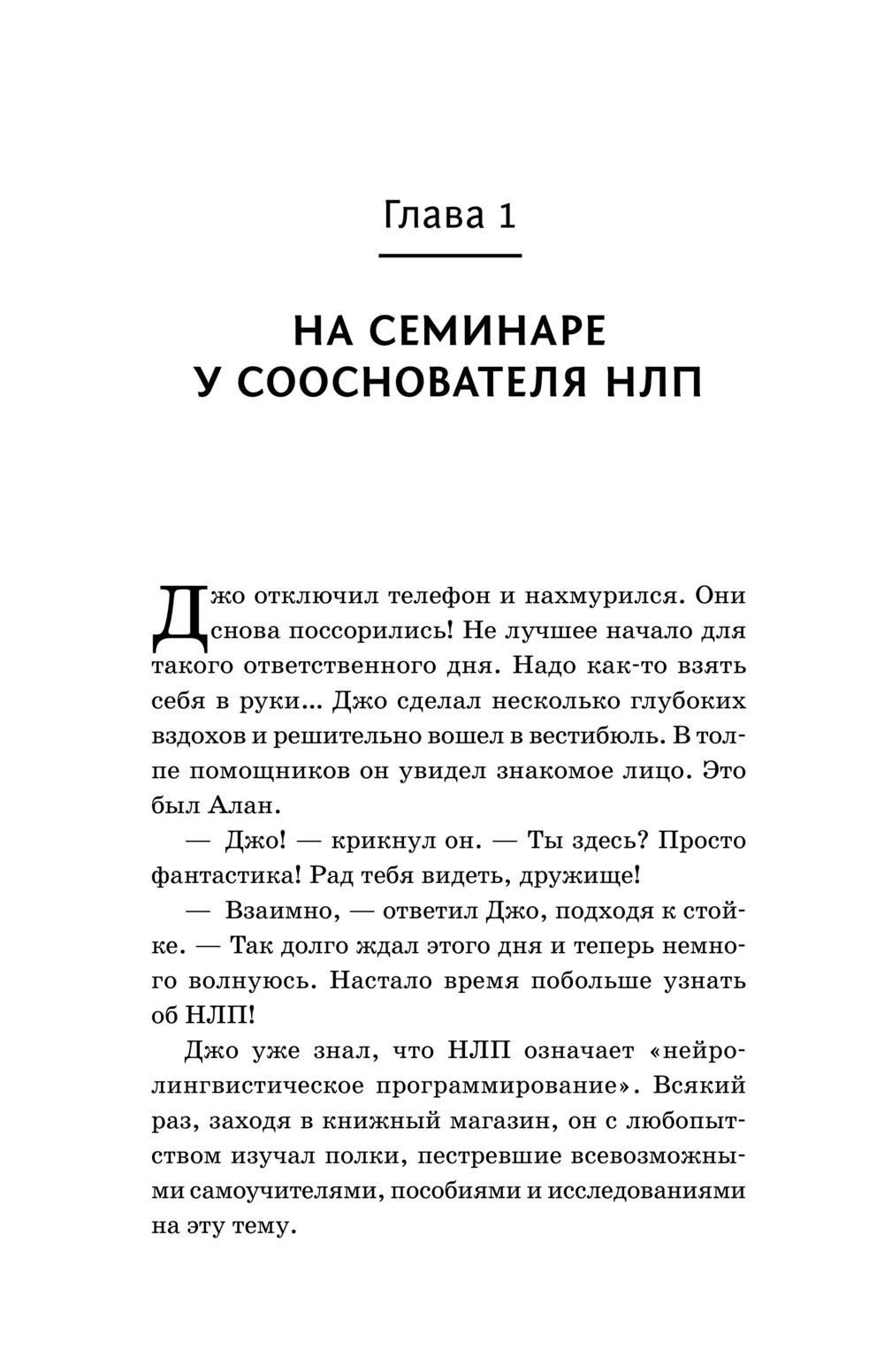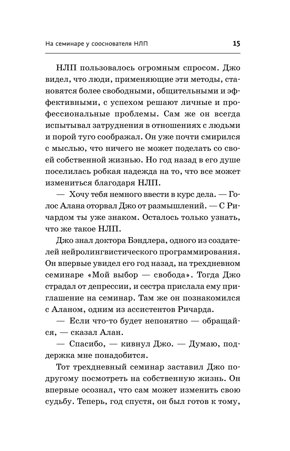 Самоучитель НЛП Ричарда Бэндлера – это изложение основ НЛП в форме простой, но увлекательной истории. Вы сможете окунуться в атмосферу семинаров мастера НЛП и из первых рук узнать о простых техниках, которые он разработал за последние 45 лет.