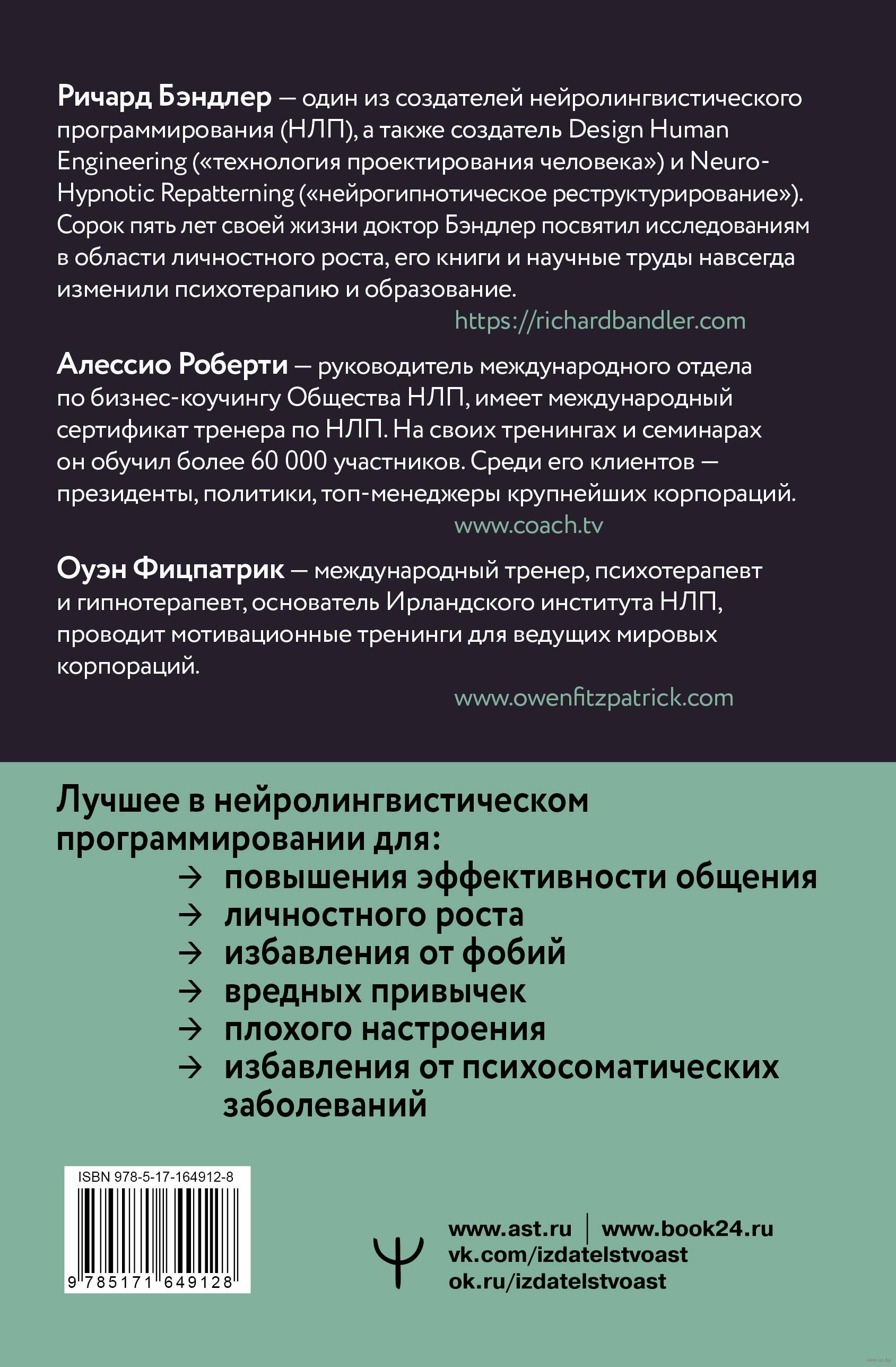 Откройте для себя удивительный мир НЛП – методики, которая поможет вам по-новому взглянуть на свою жизнь и достичь невероятных результатов! В этой книге вы найдете уникальные инструменты и техники, разработанные легендарными авторами.