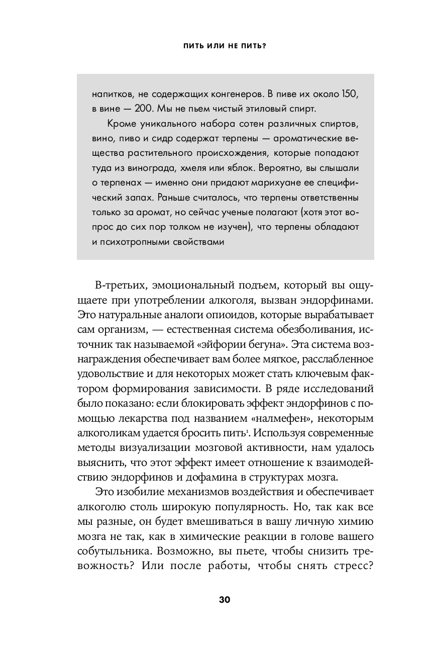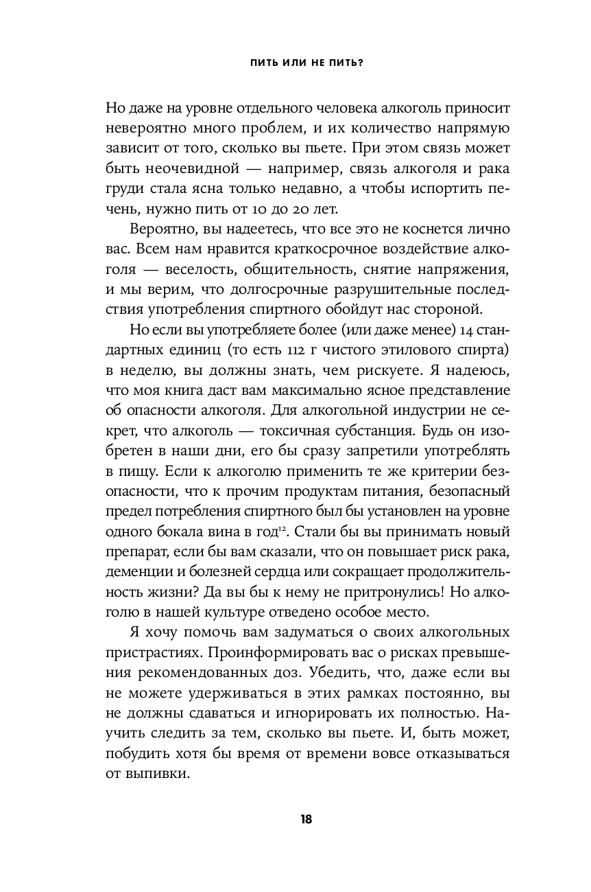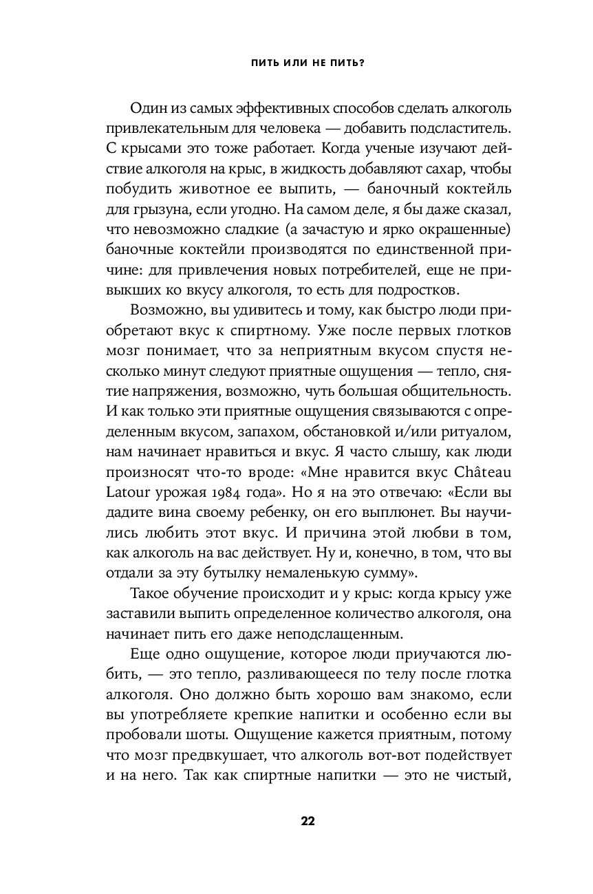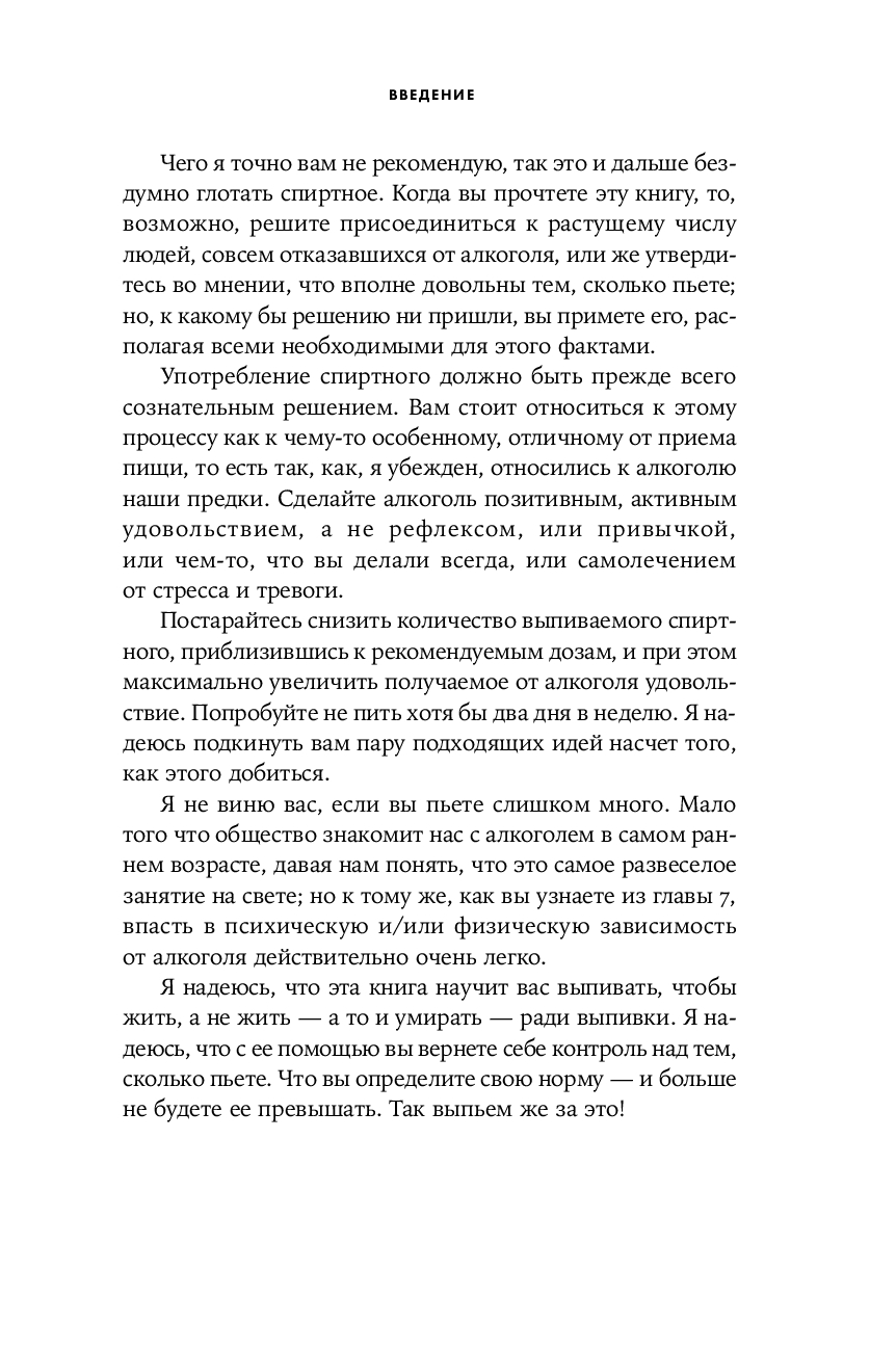 Вся эта информация, подкрепленная самыми современными научными данными, должна помочь каждому из нас определить для себя ту идеальную дозу спиртного, которая принесет максимальную радость при минимальном вреде, – и в конечном итоге ответить на вечный вопрос "Пить или не пить?".