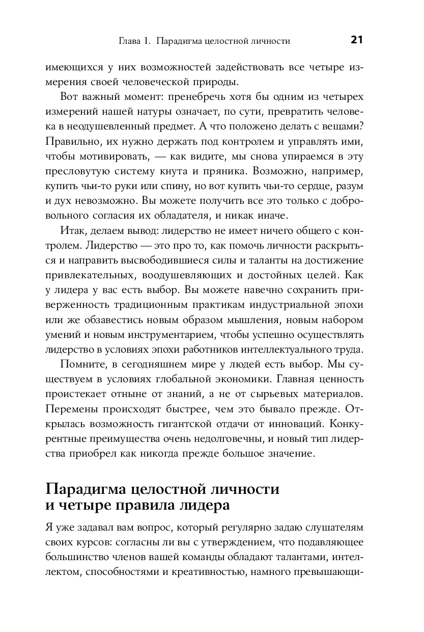 Каждая организация и каждый лидер стремятся к успеху. Но почему же тогда достичь его удается лишь немногим? Все дело в том, что зачастую лидеры исповедуют старомодные, отжившие свое подходы к лидерству. Между тем по-настоящему успешные лидеры не только иначе смотрят на мир, они и действуют иначе.