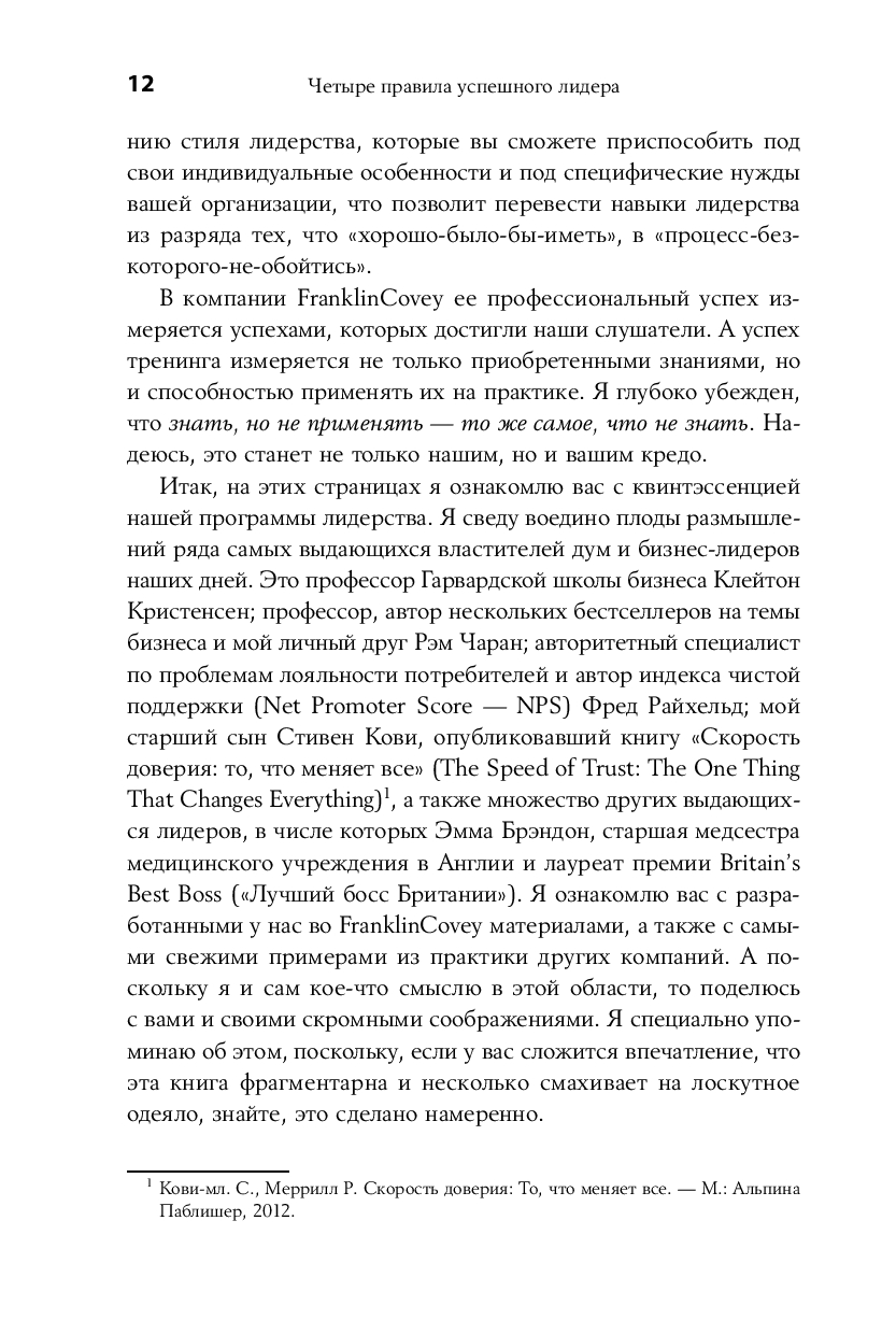 Стивен Кови дает простые в применении, конкретные стратегии, которые помогут вам изменить ваше поведение в качестве лидера. Используя эти инструменты, вы заметите, как улучшится мотивация ваших подчиненных и повысится продуктивность вашей работы.