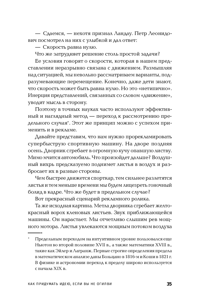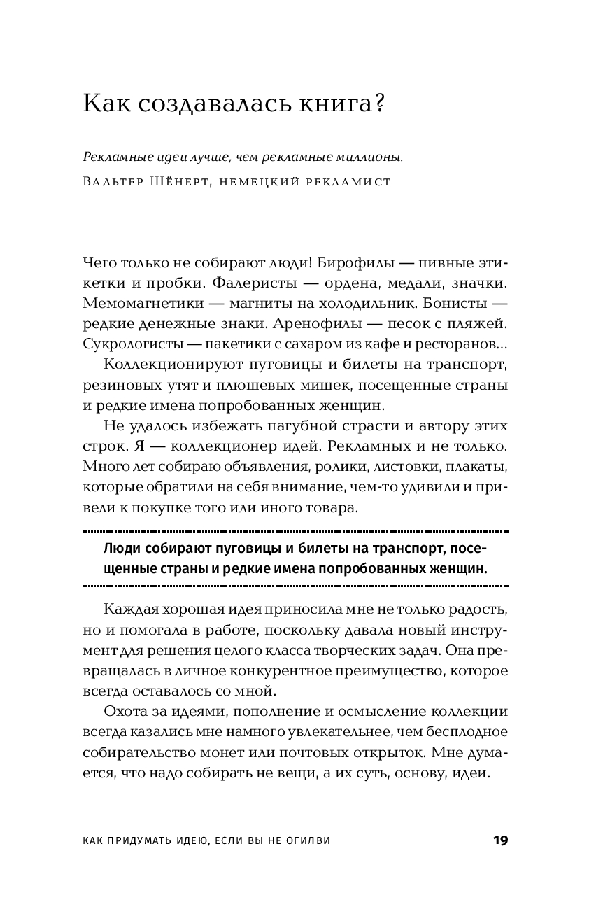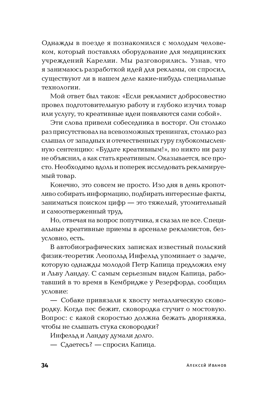 В книге предлагается альтернативный подход к поиску нестандартных идей в рекламе. Возможно, впервые в рекламном деле подробно рассмотрены, проанализированы и приведены в систему креативные приемы, позволяющие выходить на сильное решение без перебора вариантов. Одновременно обсуждаются и психологические барьеры, которые мешают находить неожиданные рекламные ходы.