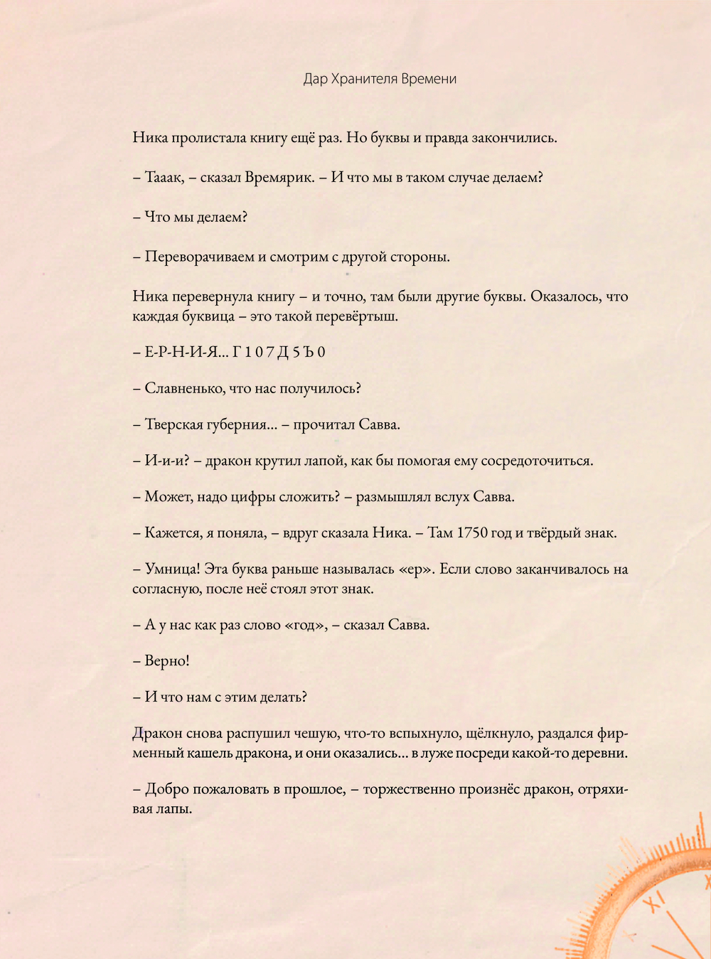 В мире, где время не только течёт, но и пульсирует, Ника и Савва вместе с драконом Времяриком отправляются на поиски забытых секретов их предков.