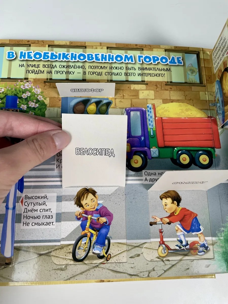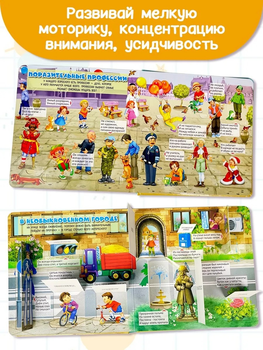 Эта книга – увлекательное путешествие в мир слов и загадок! Открывая окошки и отгадывая простые весёлые загадки, малыш узнает много интересного о профессиях, животных, местах и предметах и запомнит новые слова.