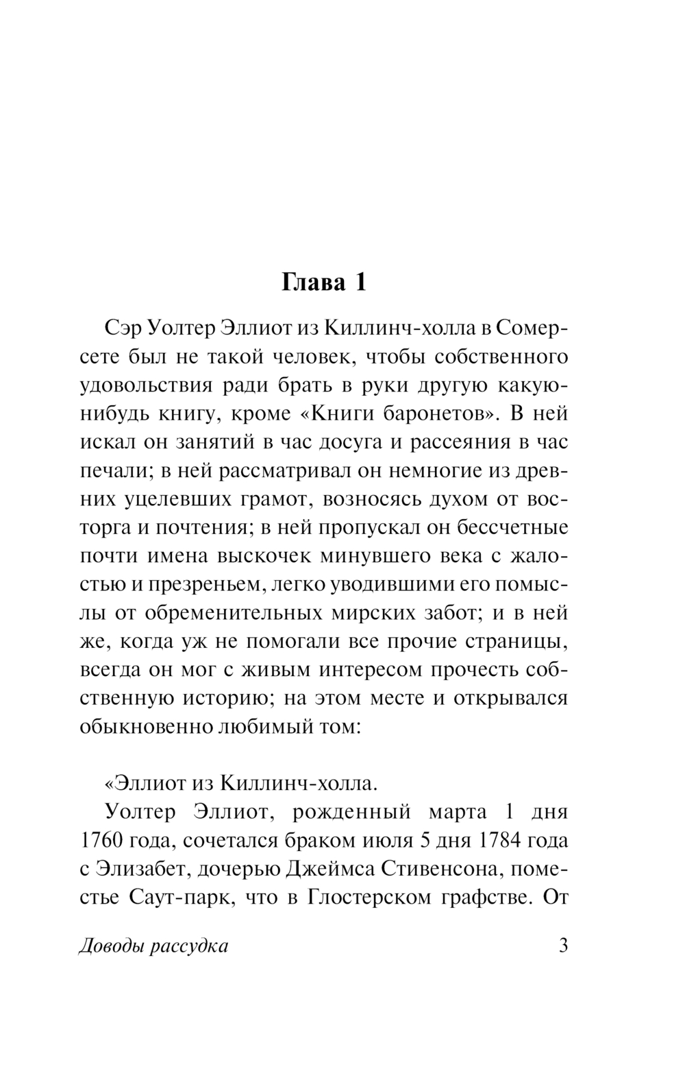 Сюжет романа несложен – встреча Энн Эллиот и Фредерика Уэнтворта в юности, любовь, разрыв и новая встреча годы спустя, уже зрелыми, много пережившими и осознавшими людьми. Однако в то же время "Доводы рассудка" представляют собой потрясающую по юмору и тонкой иронии "энциклопедию нравов" провинциального английского "света" начала XIX века. Барышни, гоняющиеся за богатыми женихами, и охотники за приданым, маменьки и тетушки, отчаянно интригующие в поисках выгодных партий для девиц, пустые и жеманные местные "львицы", разоряющиеся дворяне, сплетни и слухи – перед читателем буквально оживают красочные портреты и острые, забавные ситуации.