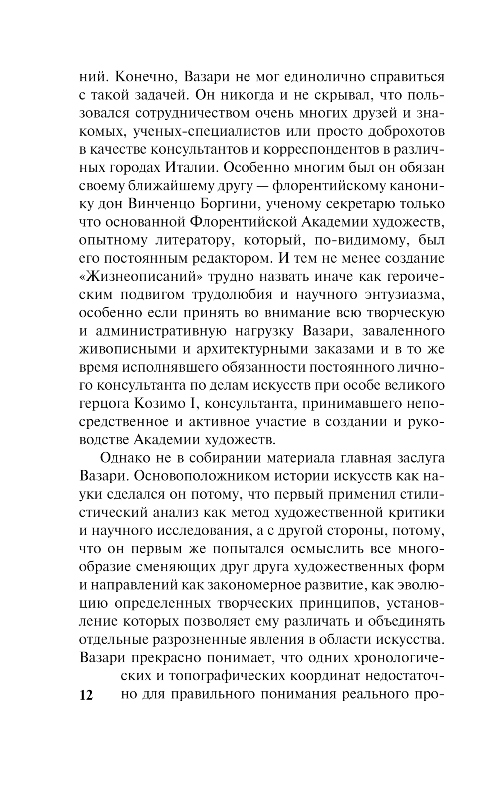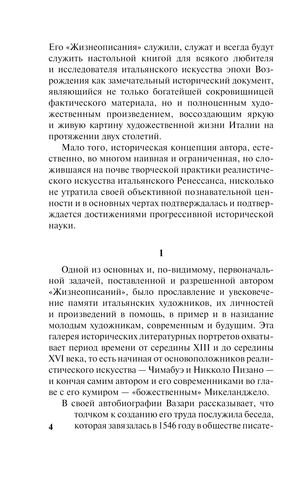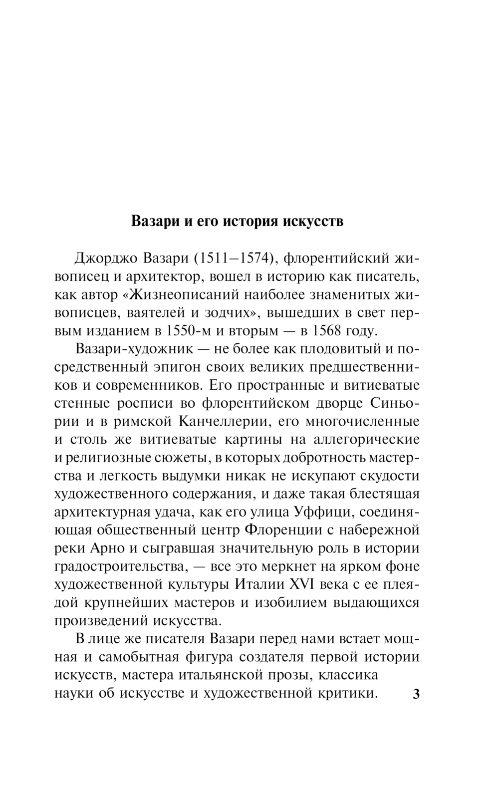 В результате у Вазари получилась едва ли не первая в мире энциклопедия, долгие годы служившая главным и единственным источником информации о величайших итальянских художниках Ренессанса. В ней вы найдете биографии Донателло и Рафаэля, Микеланджело и Леонардо да Винчи, Тициана и Джотто, Браманте и Сандро Боттичелли. Написанные живым и доступным языком, "Жизнеописания" содержат огромное количество ценных сведений о жизни, творчестве и эпохе мастеров эпохи Возрождения.