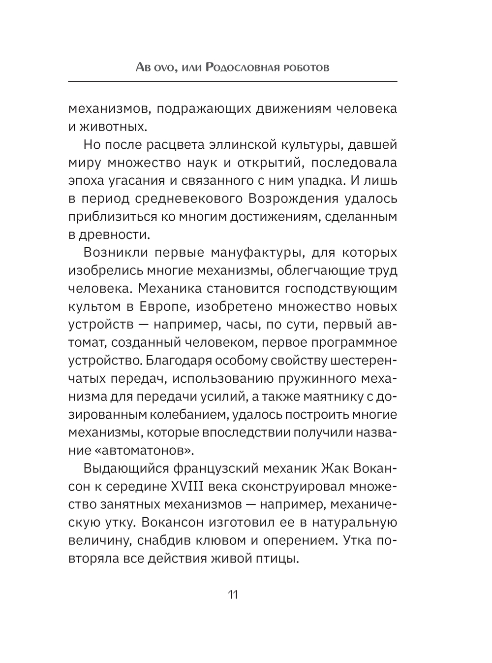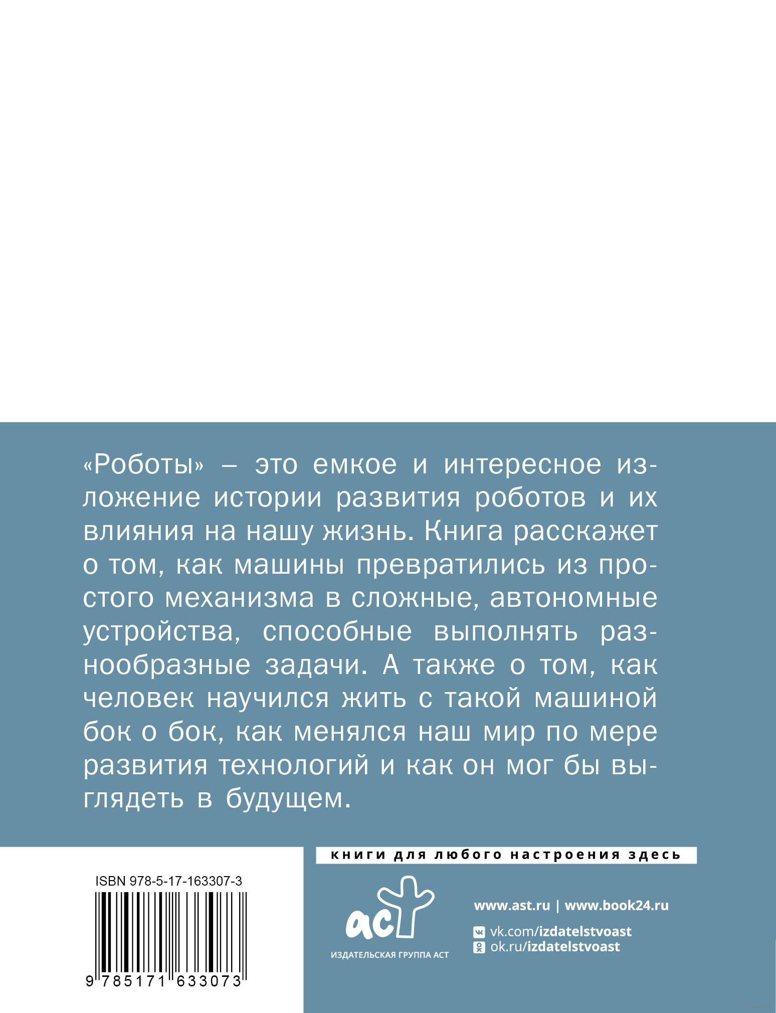 "Роботы" – это увлекательная книга, которая рассказывает о истории развития роботов простым и интересным языком, не боится ярких примеров и запоминающихся аналогий. Она погрузит вас в мир роботехники и продемонстрирует, как машины превратились из простой механической техники в сложные, автономные устройства, способные выполнять разнообразные задачи и преображать нашу жизнь.