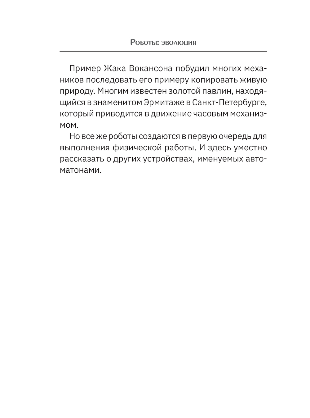 "Роботы" – это увлекательная книга, которая рассказывает о истории развития роботов простым и интересным языком, не боится ярких примеров и запоминающихся аналогий. Она погрузит вас в мир роботехники и продемонстрирует, как машины превратились из простой механической техники в сложные, автономные устройства, способные выполнять разнообразные задачи и преображать нашу жизнь.