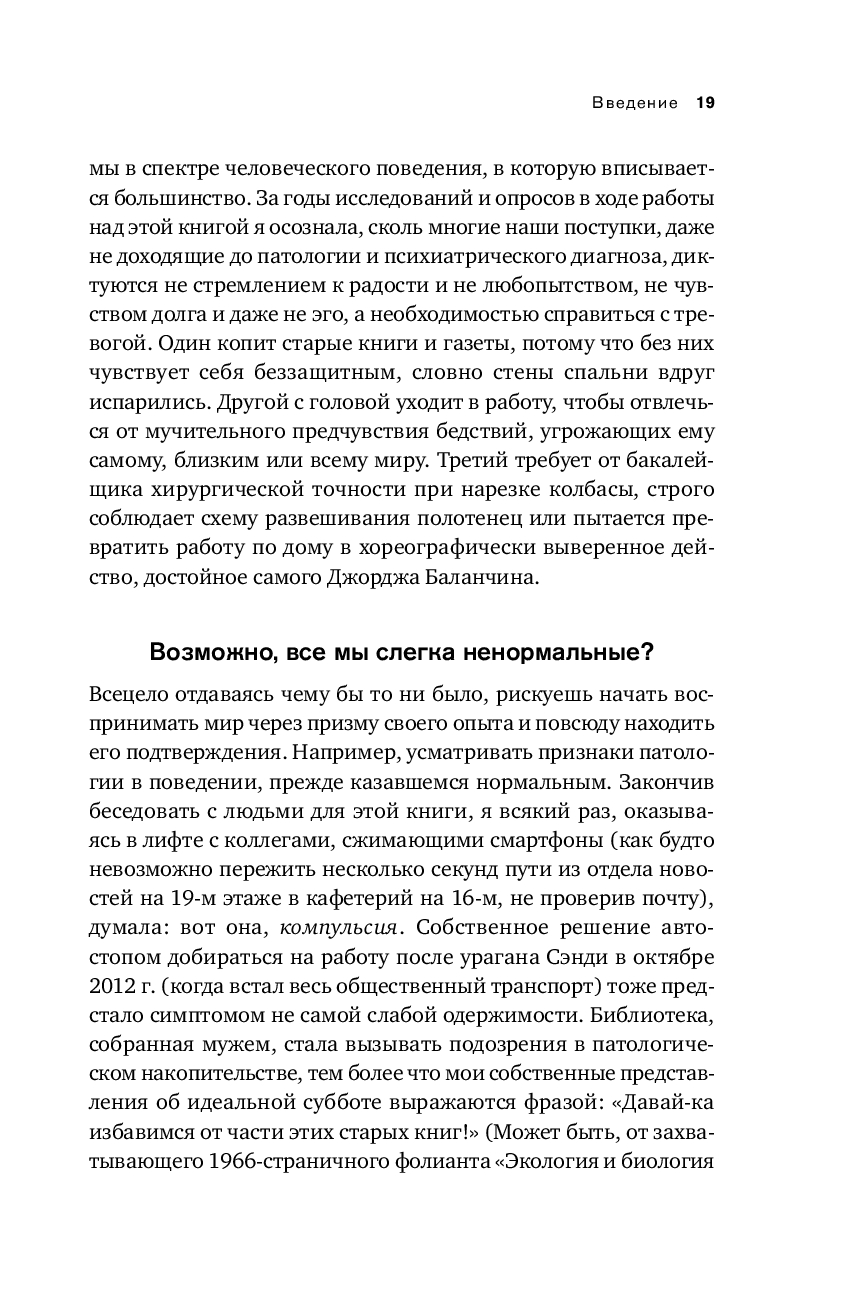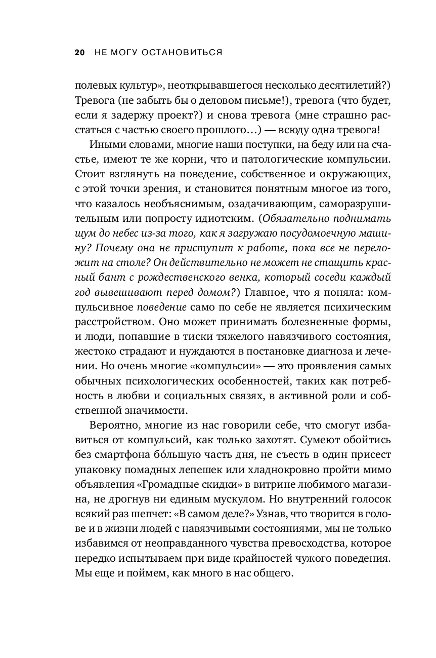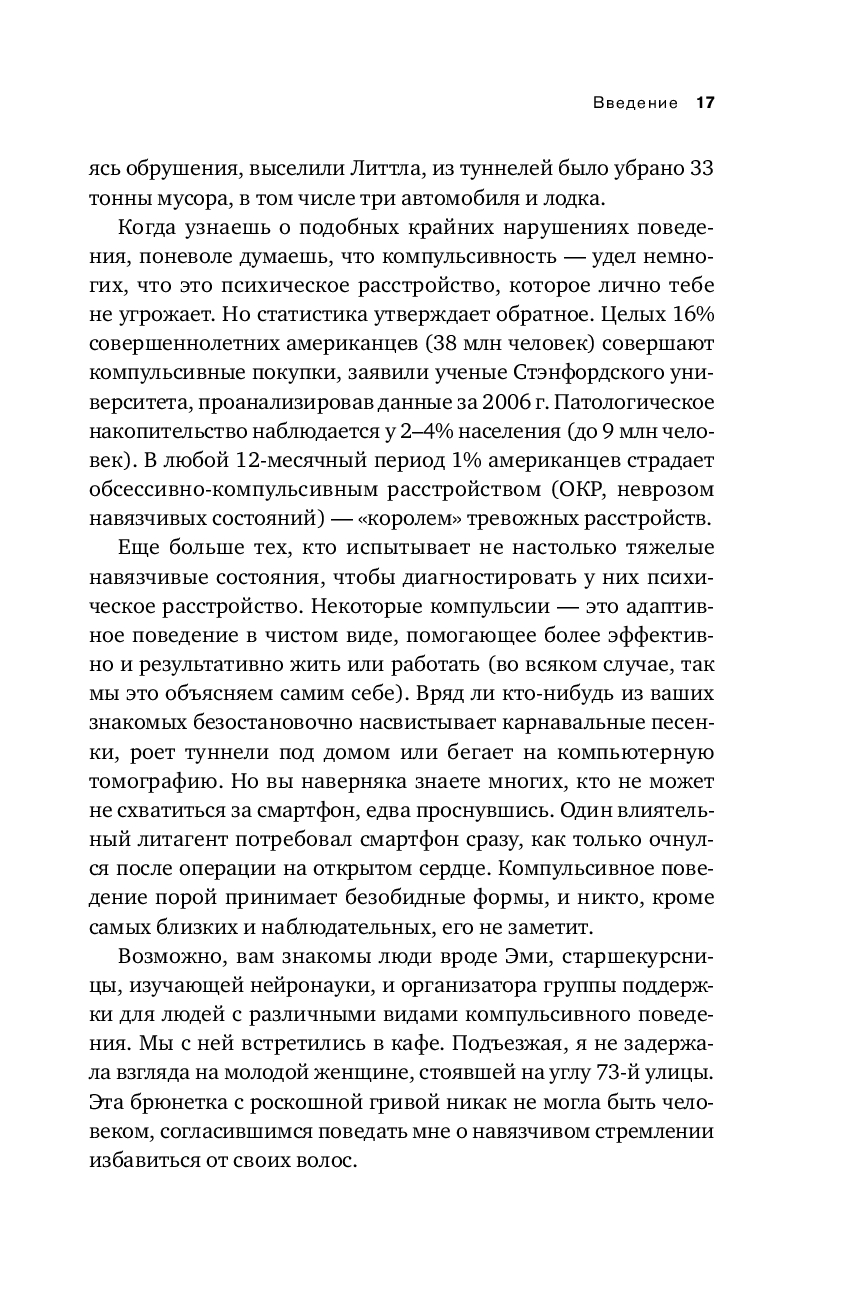 Но где грань между нормой и патологией, и главное, когда целеустремленность и одержимость – путь к творчеству и успеху, а когда – бесплодная и опасная трата усилий и времени? В книге автор рассказывает об истории изучения вопроса, о том, чем навязчивое поведение отличается от зависимости и как работает "компульсивный мозг".