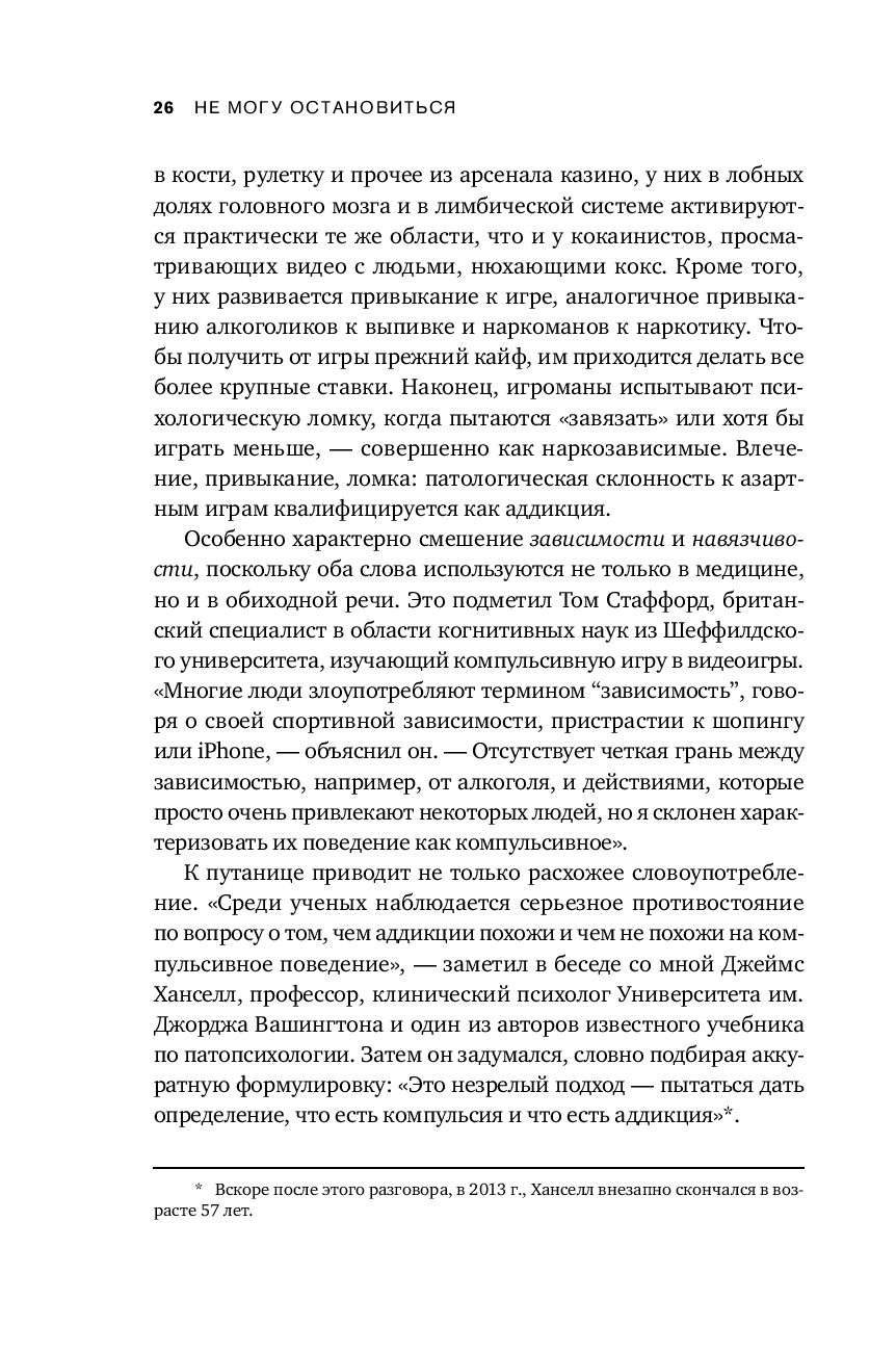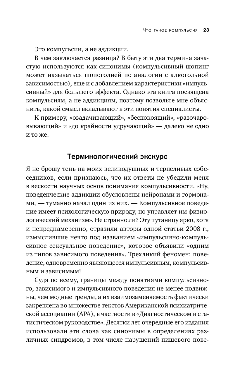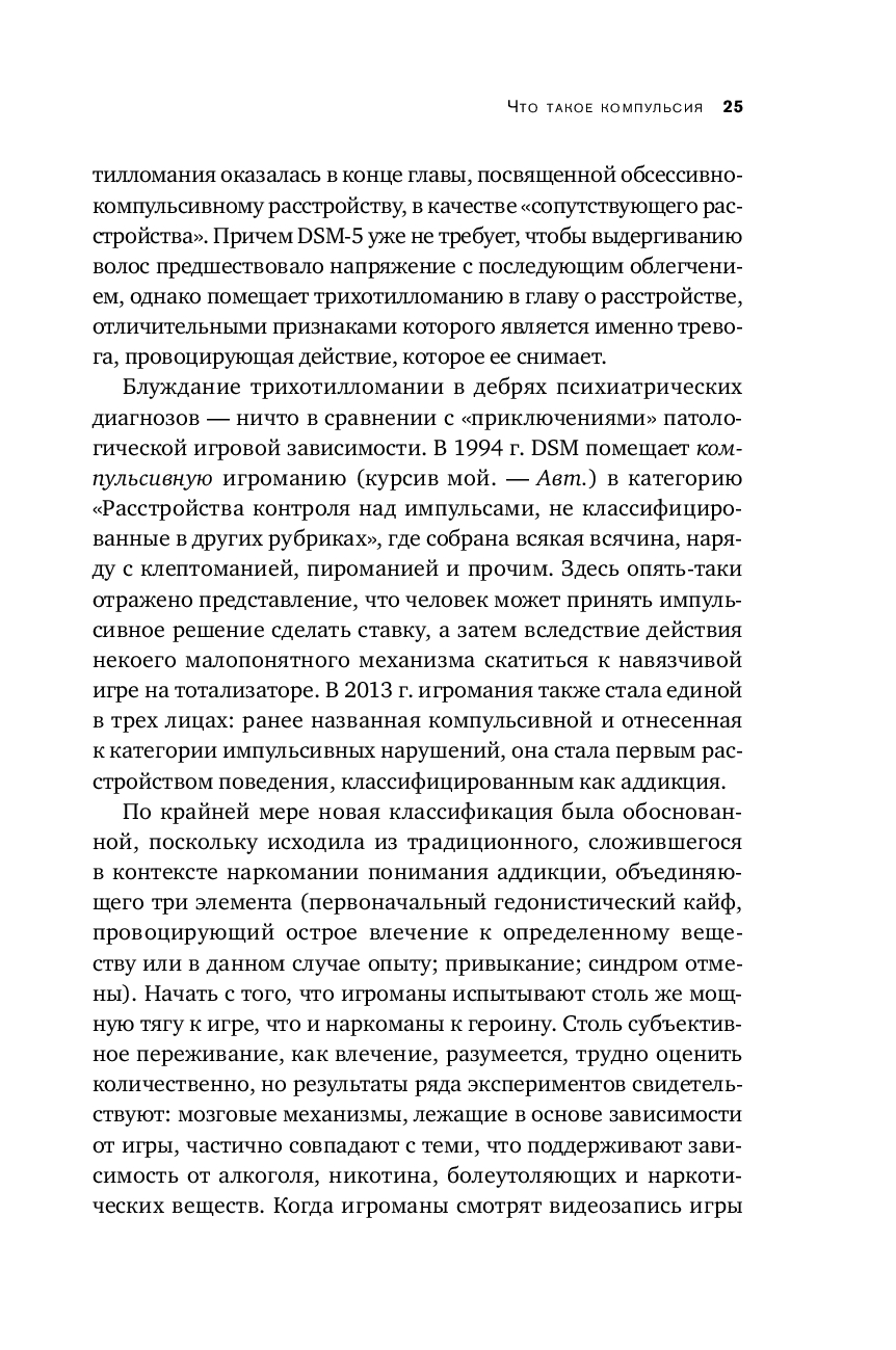 Но где грань между нормой и патологией, и главное, когда целеустремленность и одержимость – путь к творчеству и успеху, а когда – бесплодная и опасная трата усилий и времени? В книге автор рассказывает об истории изучения вопроса, о том, чем навязчивое поведение отличается от зависимости и как работает "компульсивный мозг".