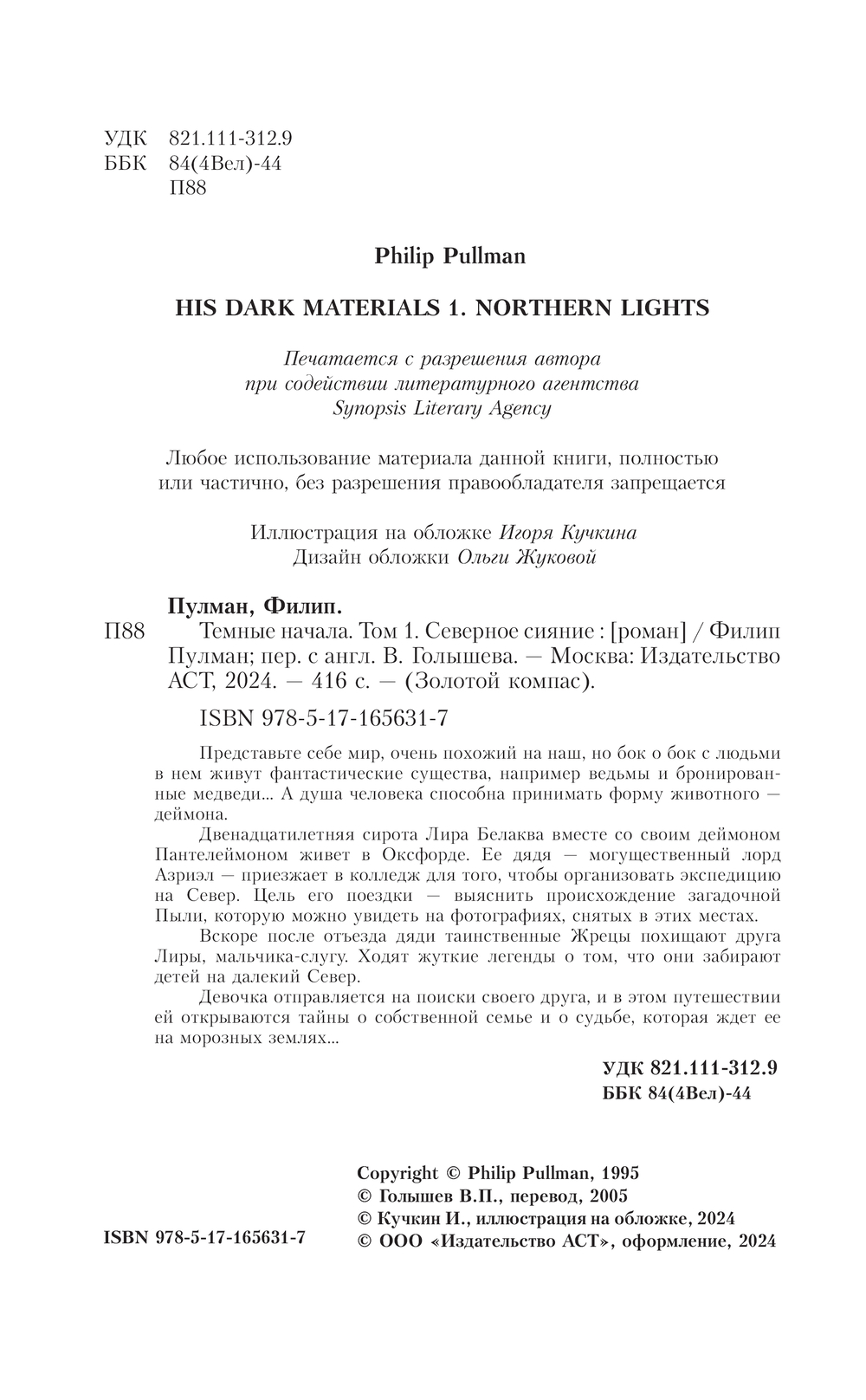 Представьте себе мир, очень похожий на наш, но бок о бок с людьми в нем живут фантастические существа, например, ведьмы и бронированные медведи... А душа человека способна принимать форму животного – деймона.