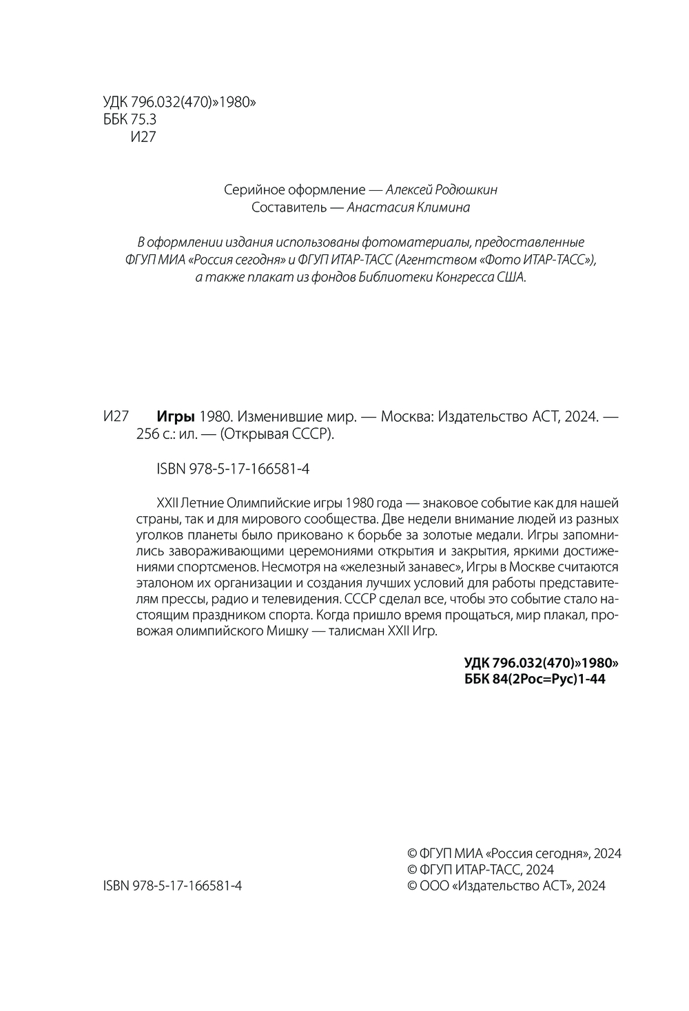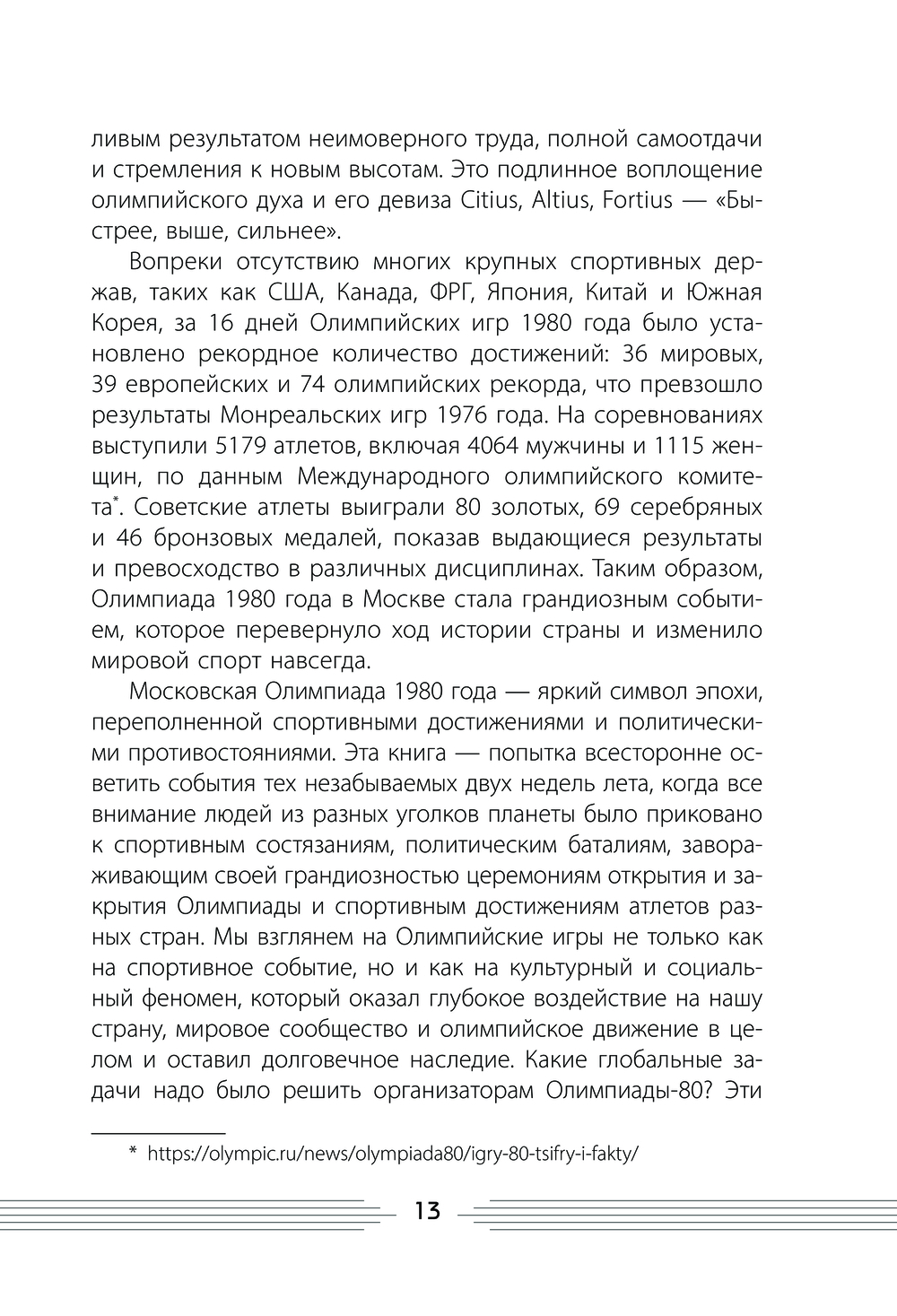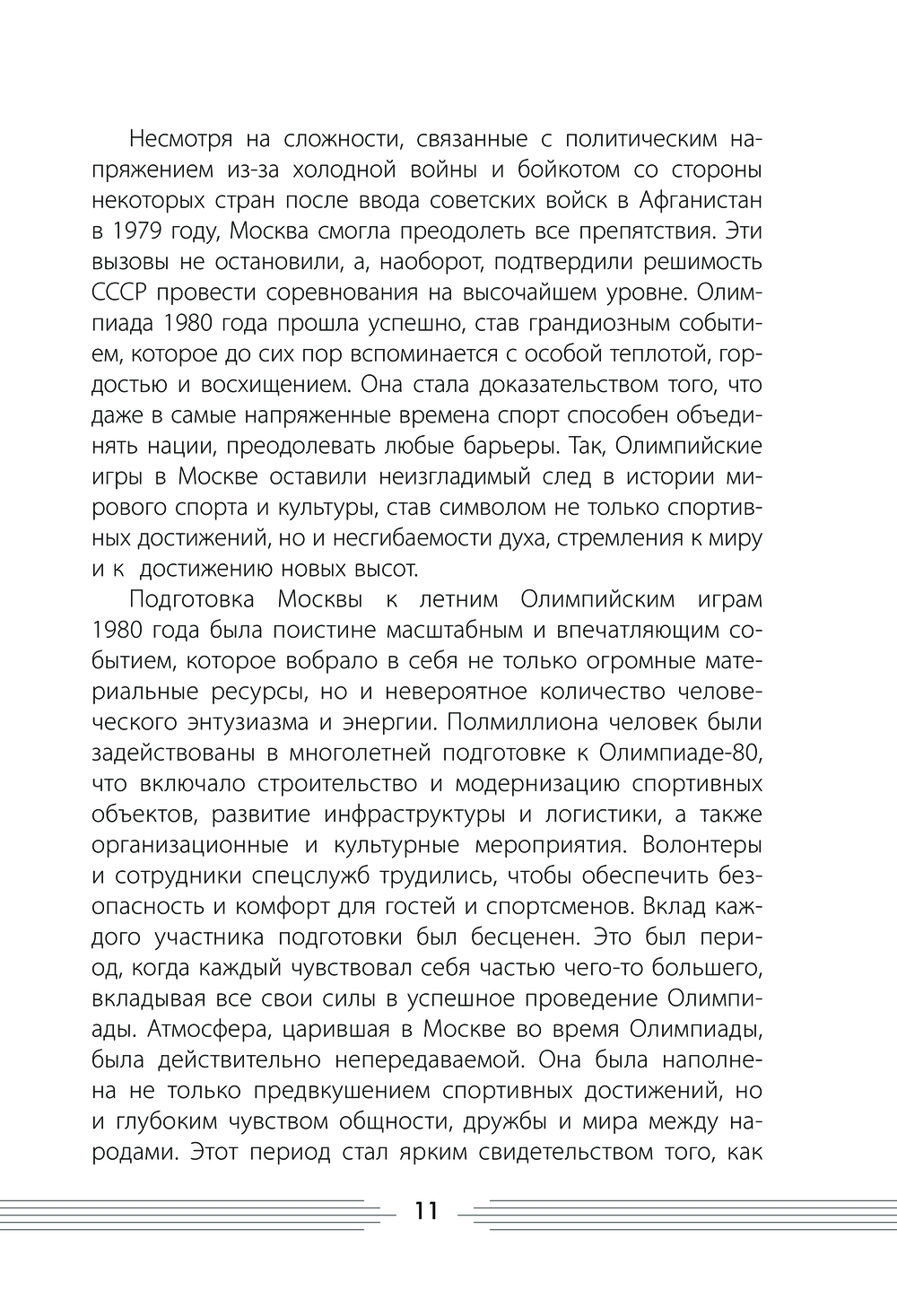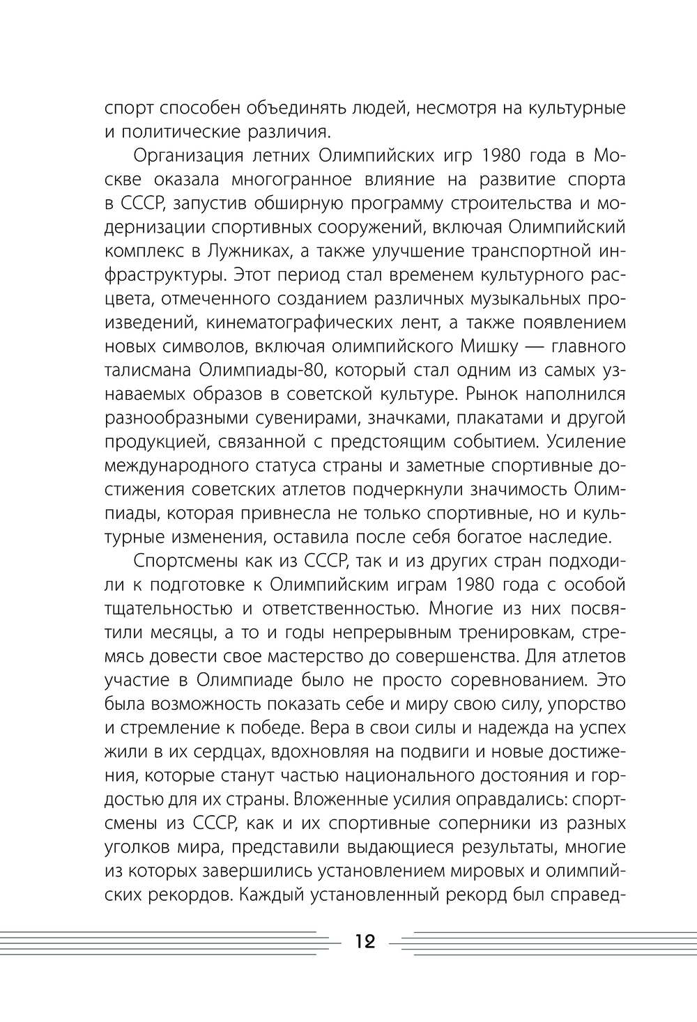 XXII летние Олимпийские игры 1980 года – знаковое событие как для нашей страны, так и для мирового сообщества. Две недели внимание людей из разных уголков планеты было приковано к борьбе за золотые медали. Игры запомнились завораживающими церемониями открытия и закрытия, яркими достижениями спортсменов. Несмотря на "железный занавес", Игры в Москве считаются эталоном их организации и создания лучших условий для работы представителей прессы, радио и телевидения. СССР сделал всё, чтобы это событие стало настоящим праздником спорта. Когда пришло время прощаться, мир плакал, провожая олимпийского Мишку – талисман XXII Игр.