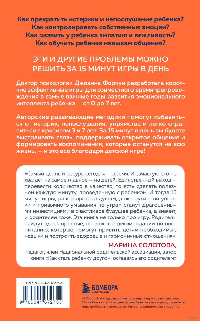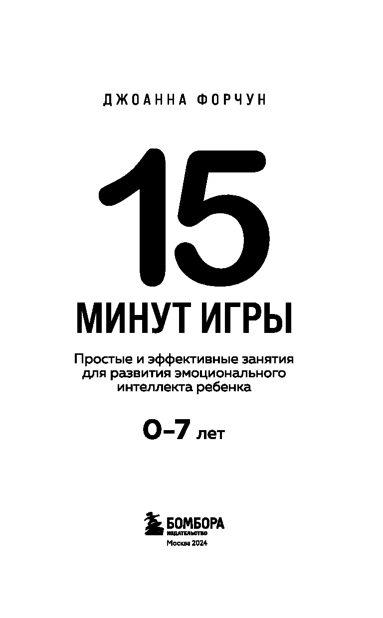 Доктор психологии и эксперт по воспитанию Джоанна Форчун разработала короткие эффективные игры для совместного времяпрепровождения в самые важные годы развития эмоционального интеллекта ребенка, от 0 до 7 лет. Авторские развивающие методики помогут решить распространенные поведенческие проблемы этого возраста: истерики, непослушание, упрямство, кризис 3 и 7 лет.