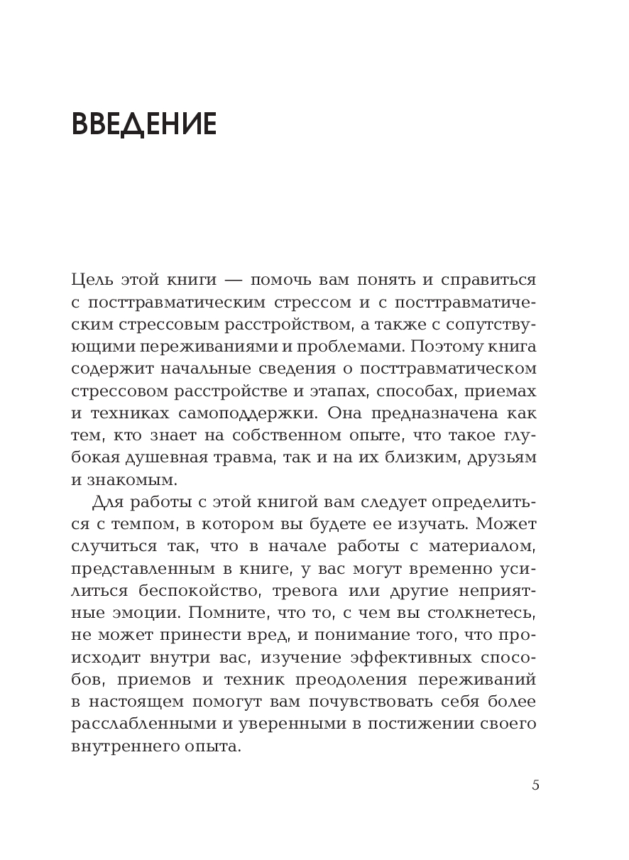 Перед вами книга, которая содержит начальные сведения о посттравматическом стрессовом расстройстве и этапах, способах, приемах и техниках самоподдержки. Она предназначена как для тех, кто знает на собственном опыте, что такое глубокая душевная травма, так и на их близких, друзей и знакомых.