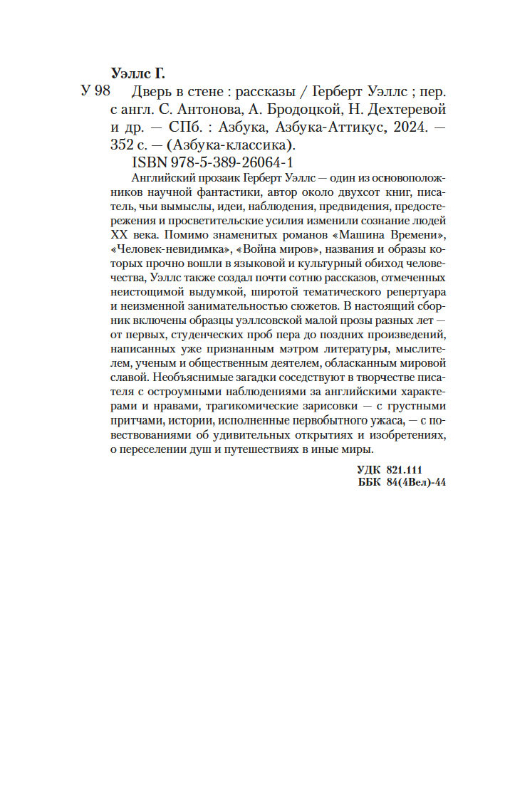 В настоящий сборник включены образцы уэллсовской малой прозы разных лет – от первых, студенческих проб пера до поздних произведений, написанных уже признанным мэтром литературы, мыслителем, ученым и общественным деятелем, обласканным мировой славой. Необъяснимые загадки соседствуют в творчестве писателя с остроумными наблюдениями за английскими характерами и нравами, трагикомические зарисовки – с грустными притчами, истории, исполненные первобытного ужаса, – с повествованиями об удивительных открытиях и изобретениях, о переселении душ и путешествиях в иные миры.