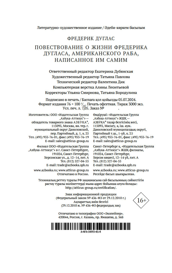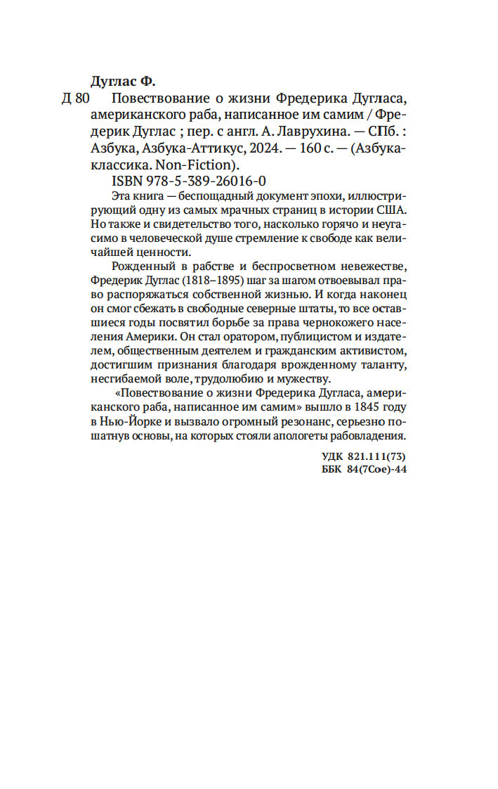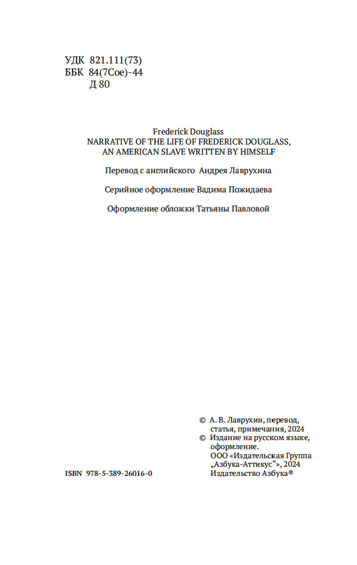 | Название в оригинале | Narrative of the Life of Frederick Douglass, an American Slave Written by Himself |