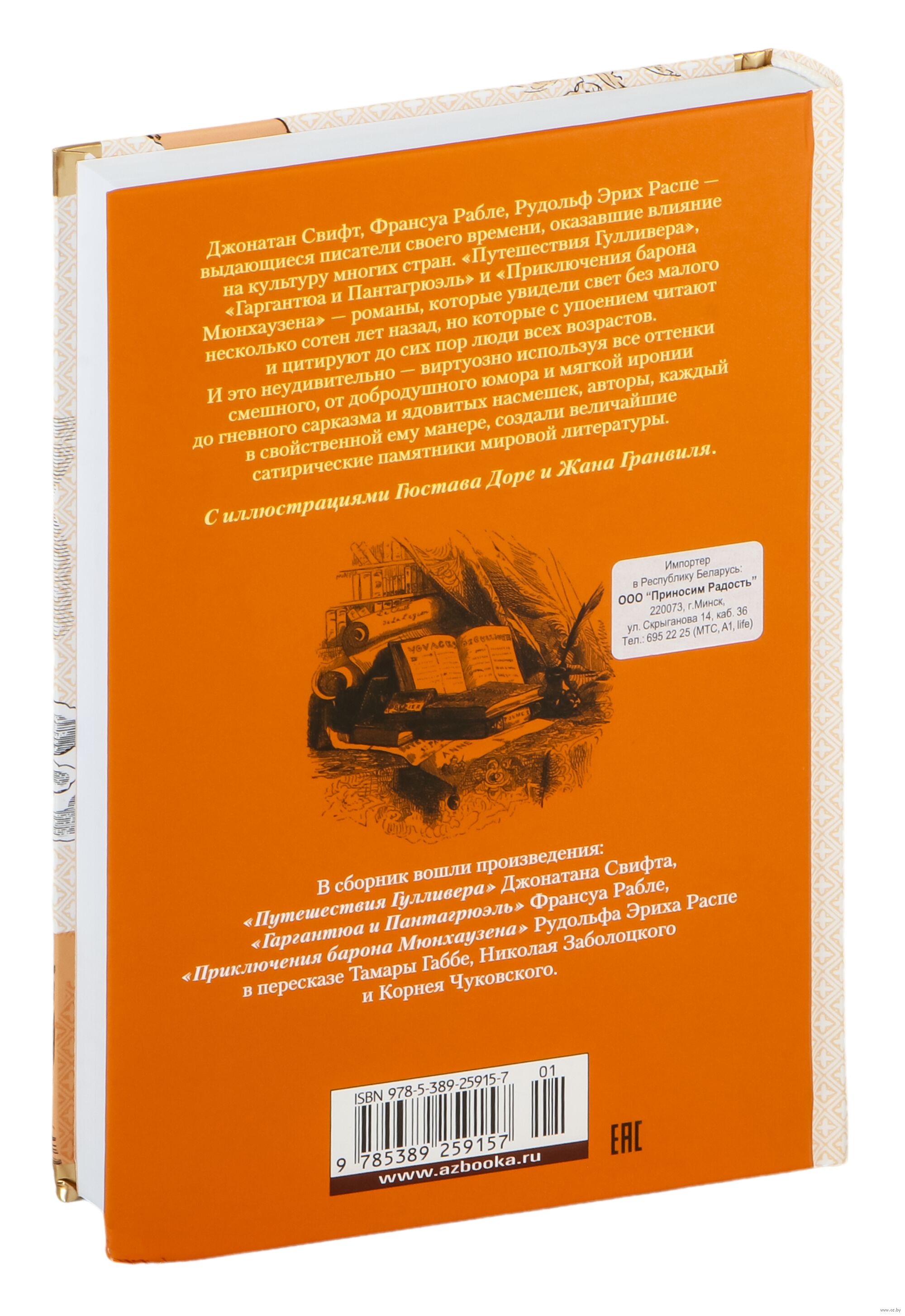 Джонатан Свифт, Франсуа Рабле, Рудольф Эрих Распе – выдающиеся писатели своего времени, оказавшие влияние на культуру многих стран. "Путешествия Гулливера", "Гаргантюа и Пантагрюэль" и "Приключения барона Мюнхаузена" – романы, которые увидели свет без малого несколько сотен лет назад, но которые с упоением читают и цитируют до сих пор люди всех возрастов. И это неудивительно – виртуозно используя все оттенки смешного, от добродушного юмора и мягкой иронии до гневного сарказма и ядовитых насмешек, авторы, каждый в свойственной ему манере, создали величайшие сатирические памятники мировой литературы.