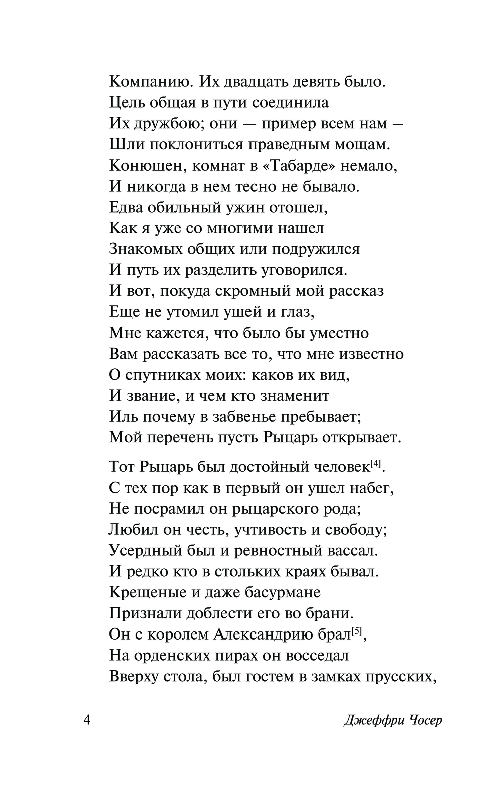 Каждый апрель вереницы странников со всей Англии стекаются в древний город Кентербери, чтобы поклониться мощам святого Томаса Бекета. Однажды в придорожной таверне встречаются представители самых разных слоев общества – рыцарь и монах, юрист и купец, врач и повар, ткачиха и продавец индульгенций. Все они направляются на паломничество в Кентербери и готовы скрасить тяготы пути рассказами о дружбе и любви, о вере и предательстве, о супружеских испытаниях и сделках с нечистой силой. Разные по стилистике и объему, отражающие индивидуальные черты каждого из рассказчиков, "Кентерберийские рассказы" одинаково увлекают и рисуют честную и подробную картину средневековой жизни со всеми ее радостями и тяготами.